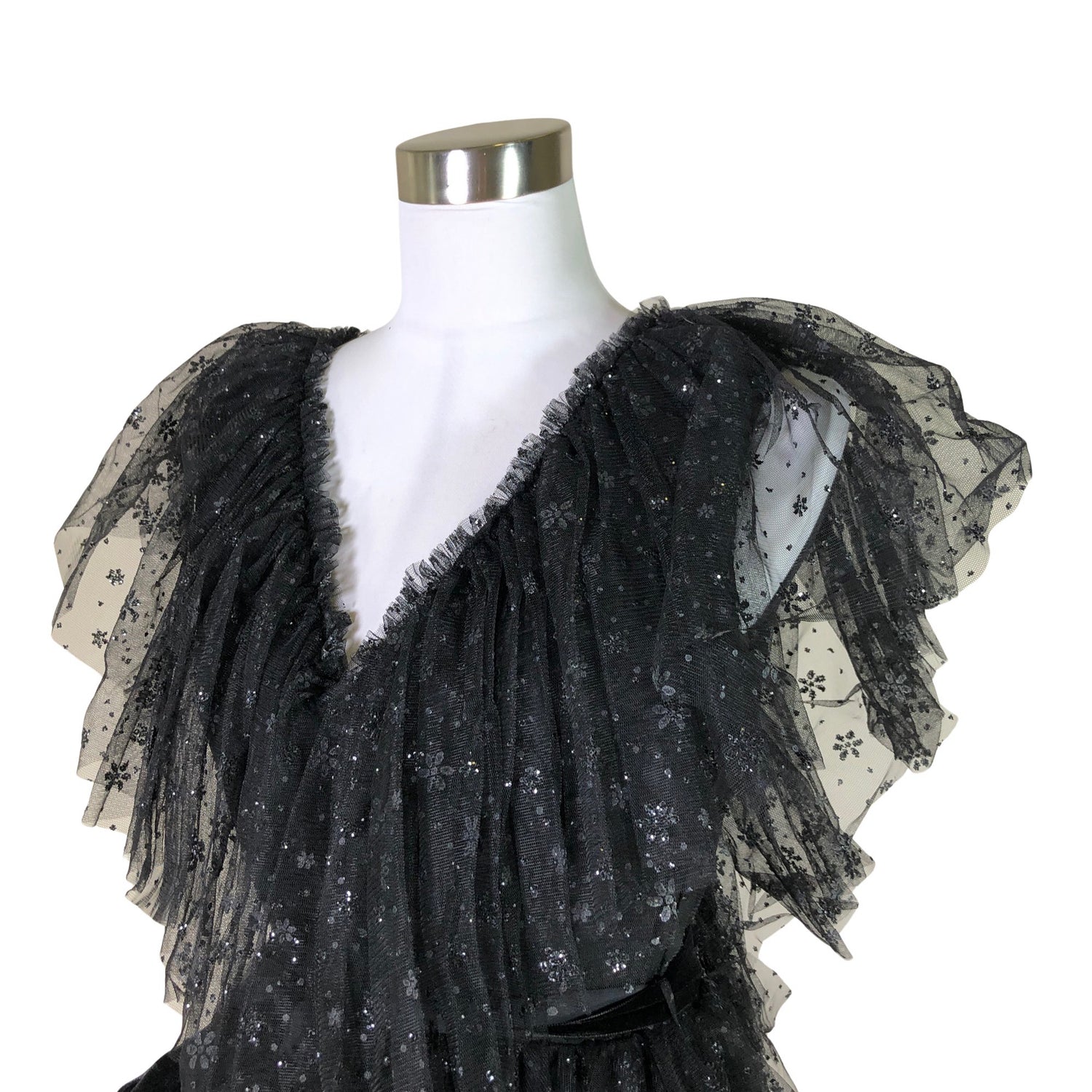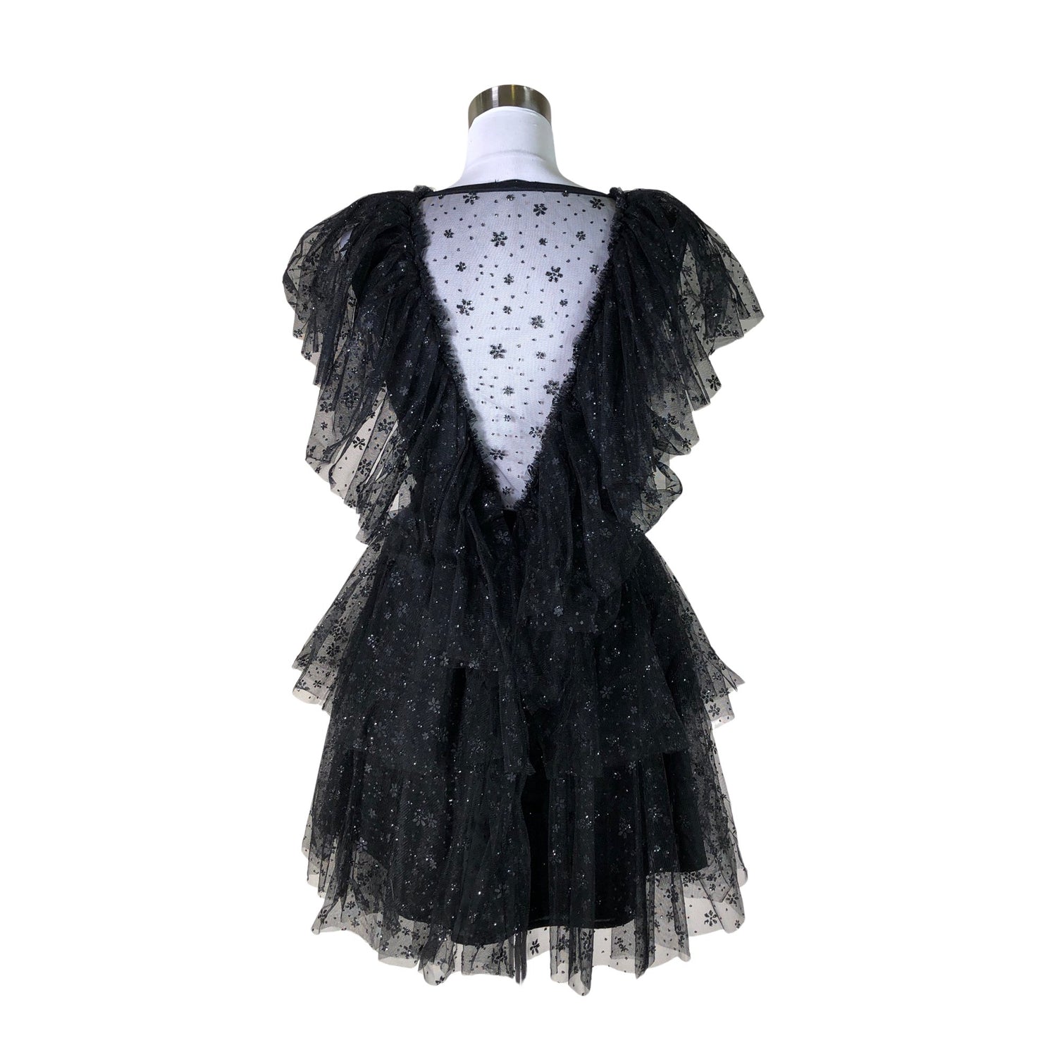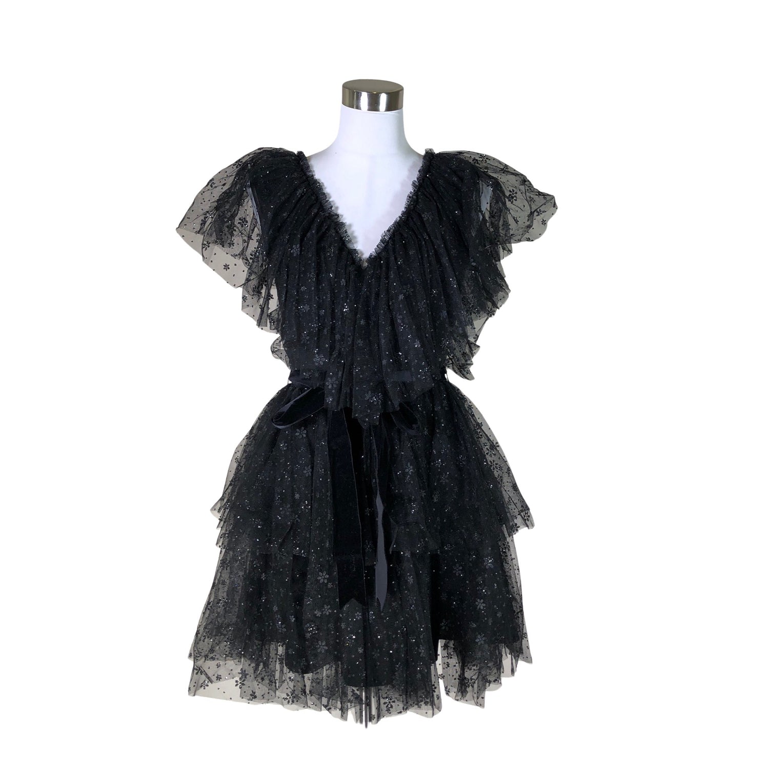 Malli: 003 Aurora Dress. Tylliä. Tuotteessa on ohut vuori. Tuote on osin läpikuultavaa materiaalia. Tuotteen pinnassa on kimalletta.