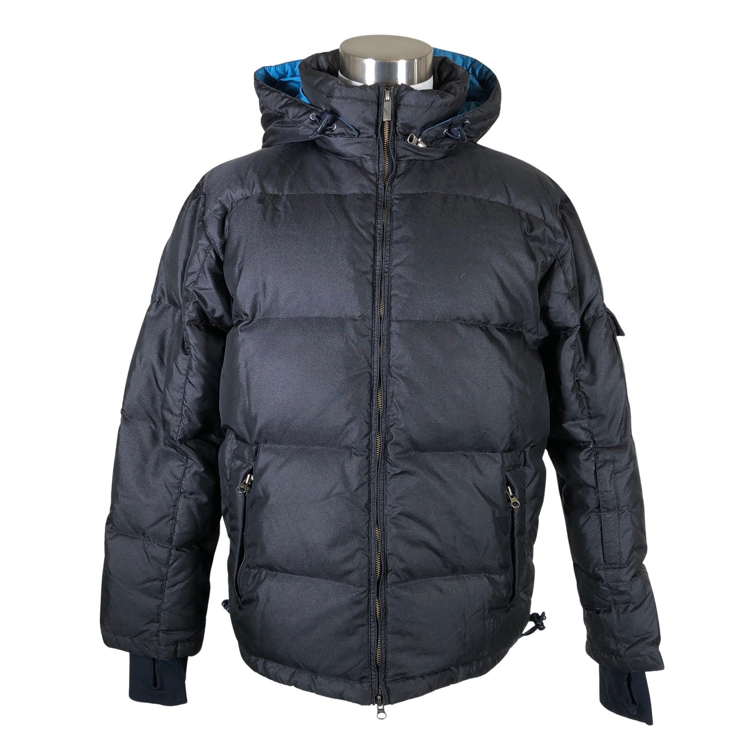 Irrotettava huppu. Korkea kaulus. Tuotteessa on kaksisuuntainen vetoketju. Hihansuissa on peukaloaukot. Kauluksen sisäpuolella on aavistus tummentumaa.. Tuotteen pinnassa on pieni tahra. Yleisilme on siisti