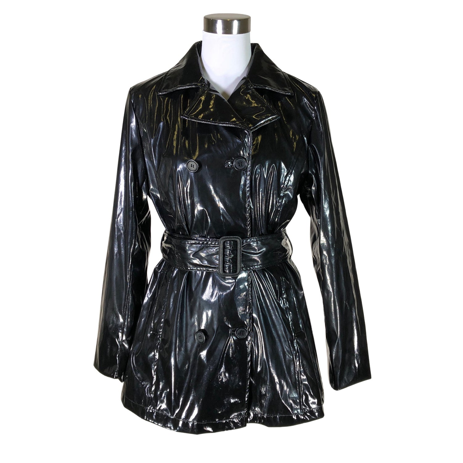 Tuotteen pinta on kiiltävä. Tuotteeseen kuuluu vyö. Tuotteen pinnassa on aavistus pesu-/käyttökulumaa. Yleisilme on siisti.