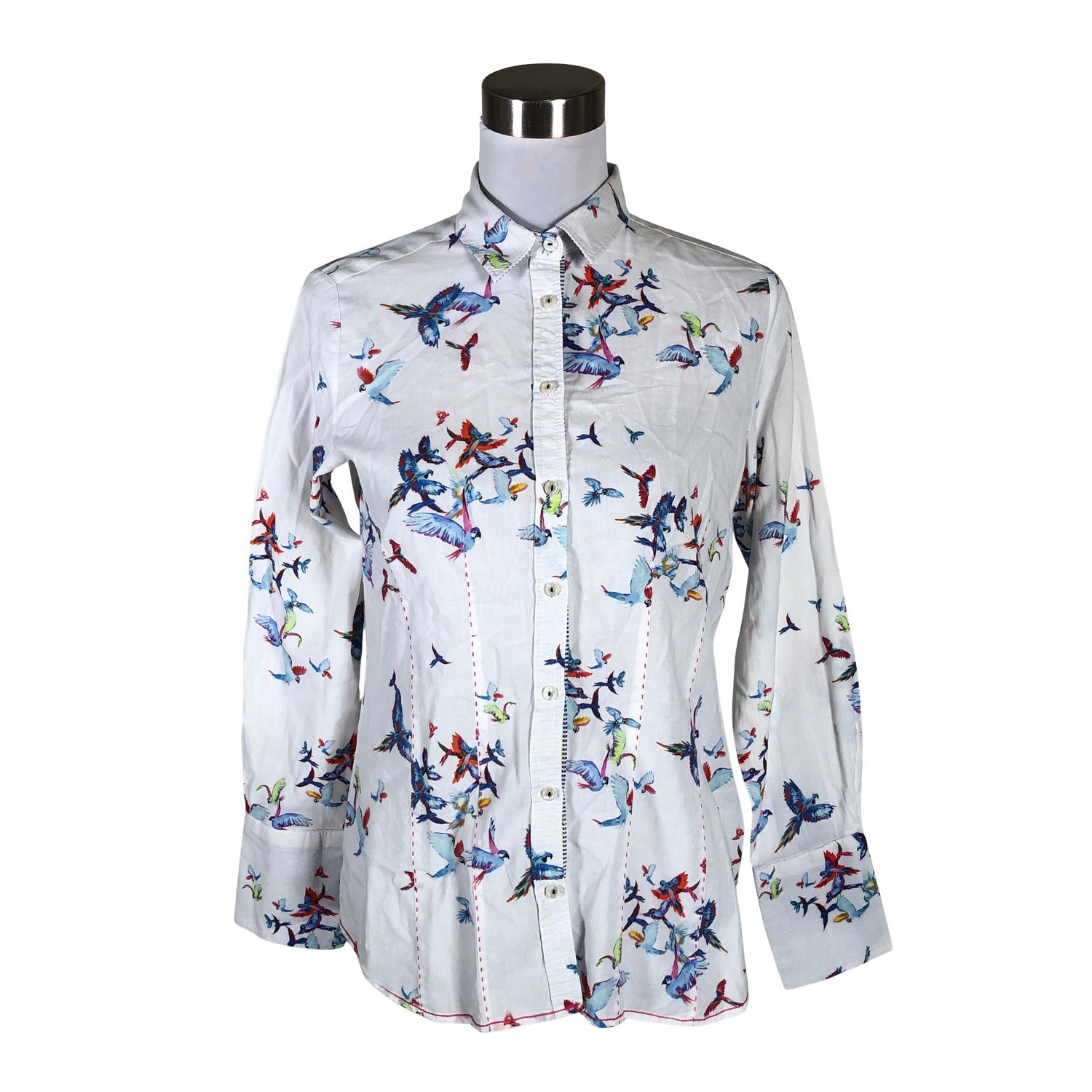 Edessä napit. Ohutta materiaalia. Tuotteen pinnassa on aavistus pesu-/käyttökulumaa. Yleisilme on siisti.