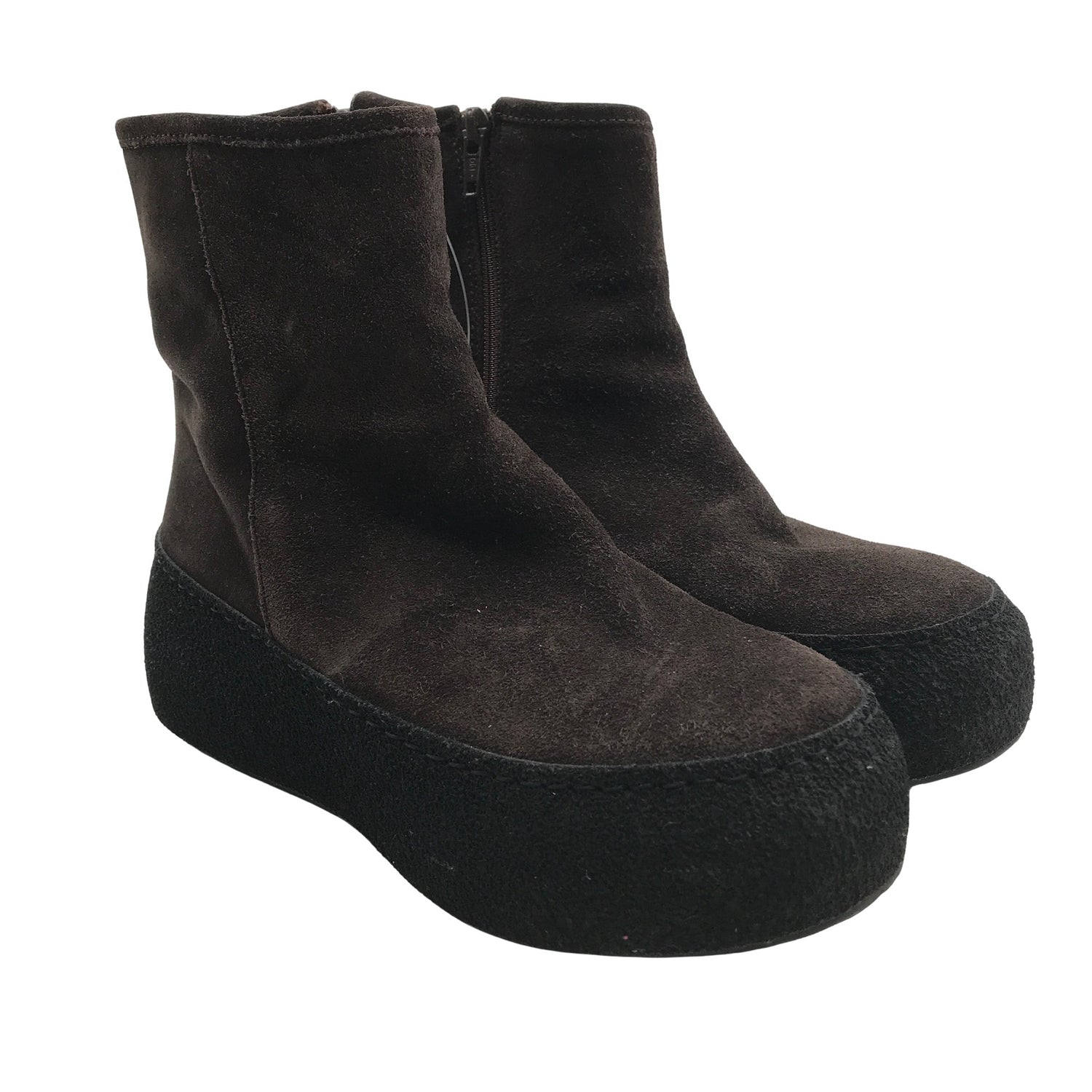 Nude of Scandinavia Talvikengät, koko 36. Mokkamainen pinta. Karvavuori. Tuotteessa on vetoketju. Paksut pohjat. Tuotteen pinnassa on hieman pesu-/käyttökulumaa. Yleisilme on siisti.