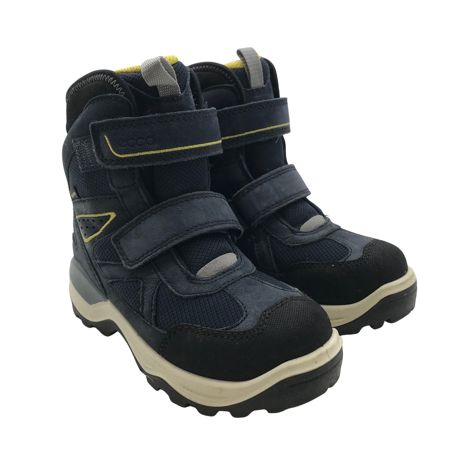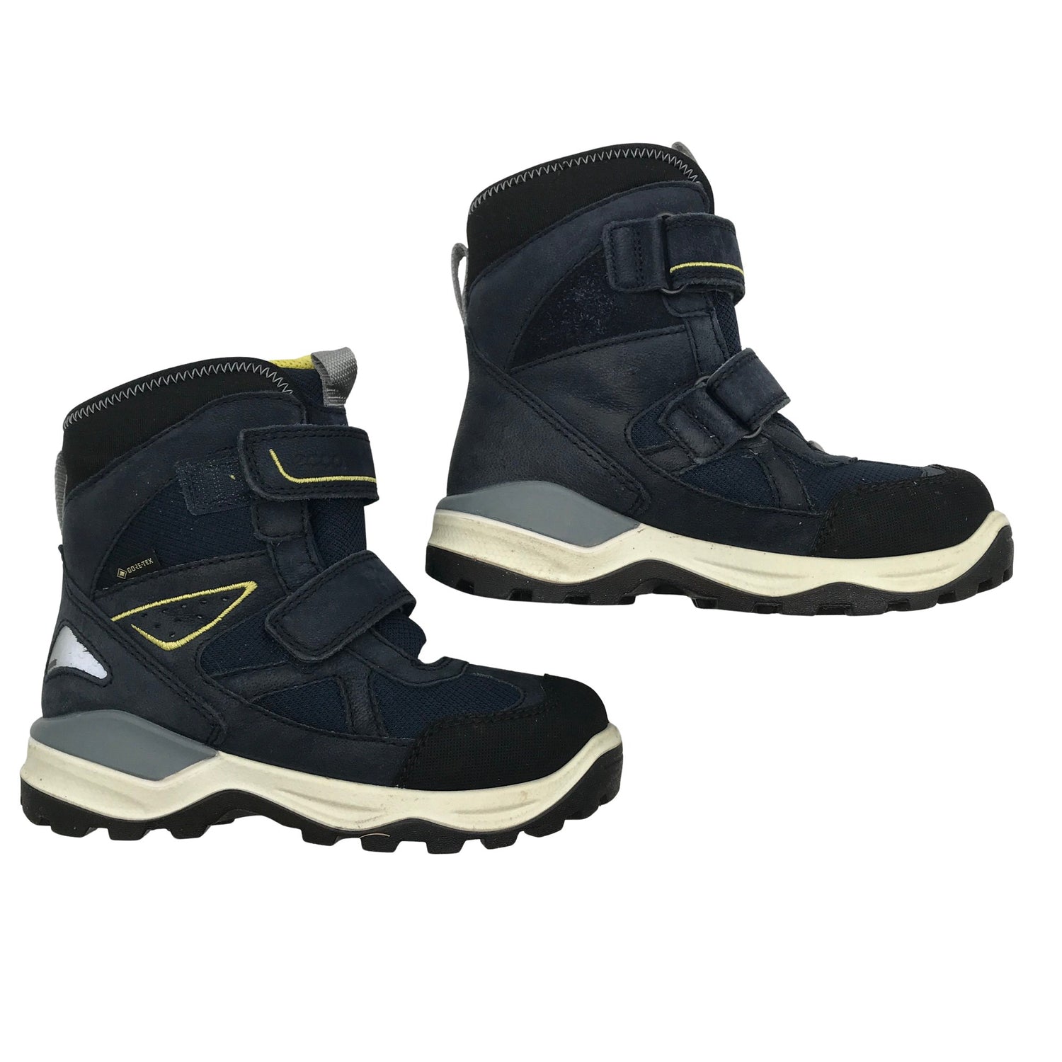 Ecco Talvikengät, koko 30. Gore-Tex -merkintä. Tuotteessa on tarrakiinnitys. Karvavuori. Mukana alkuperäinen pakkaus. Tuotteen pinnassa on aavistus käyttölikaa. Yleisilme on siisti.
