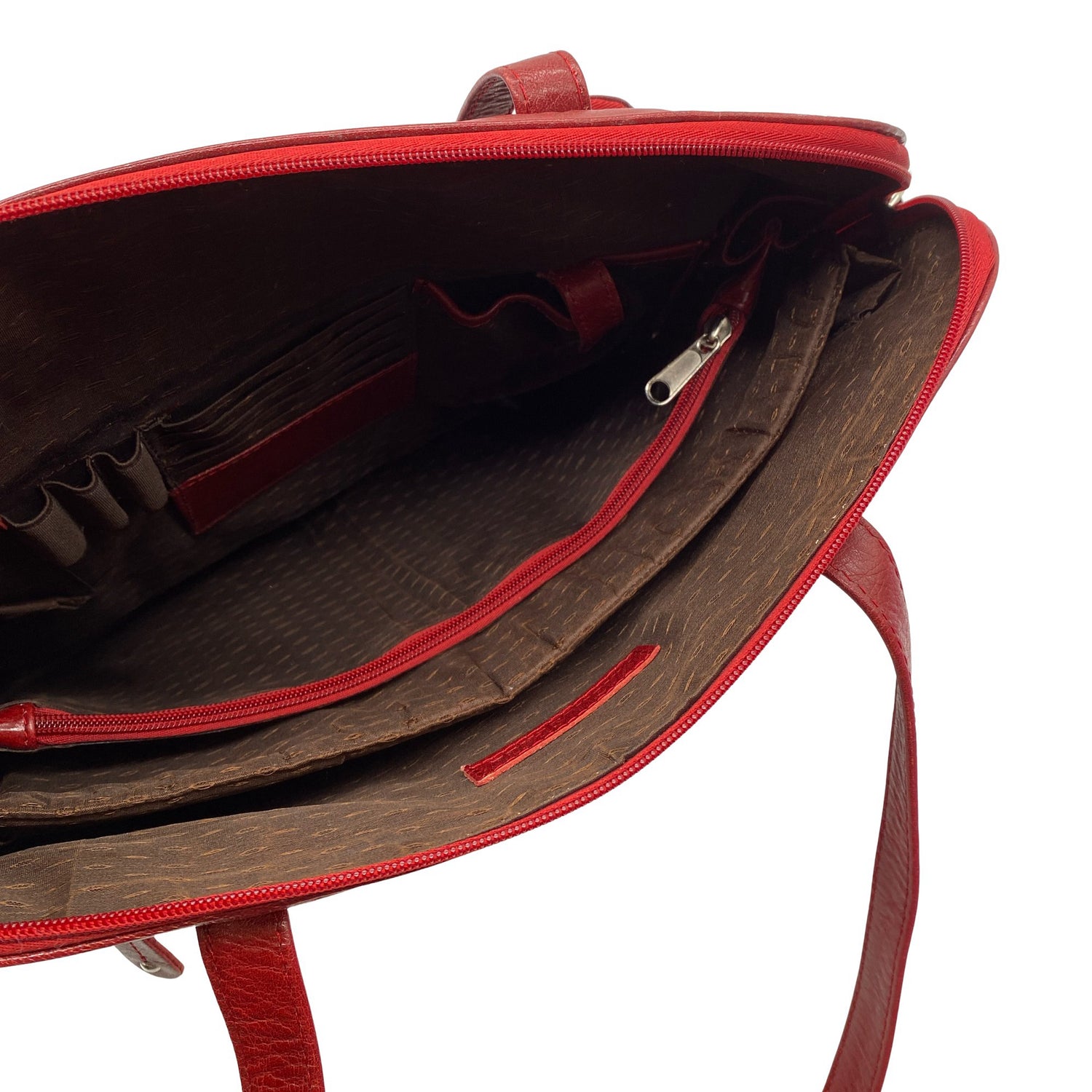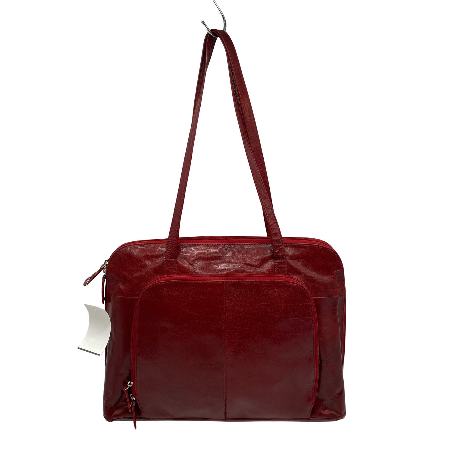 Materiaalitieto puuttuu. Todennäköisesti nahkaa. Tuotteen pinnassa on aavistus pesu-/käyttökulumaa. Yleisilme on siisti.