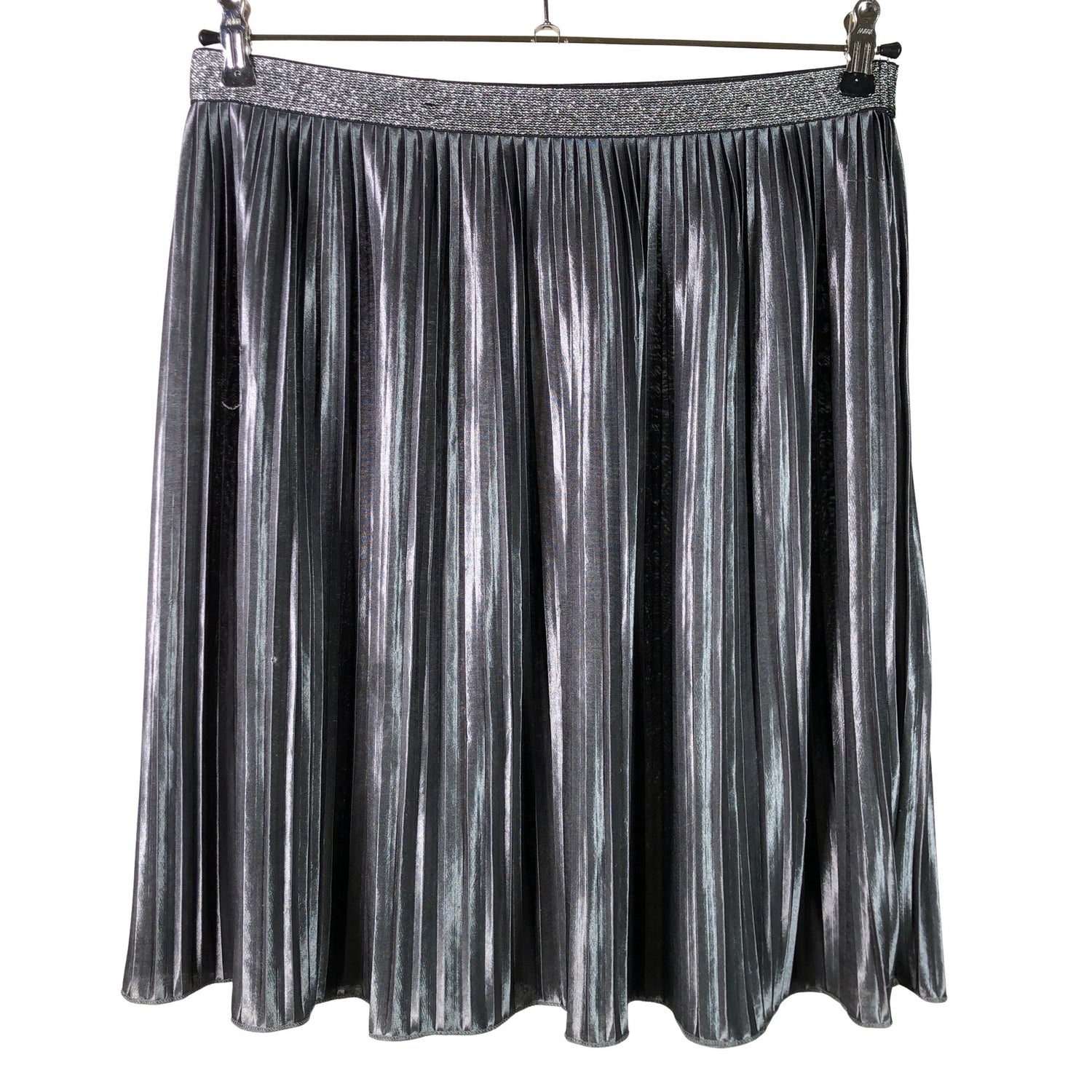 Joustava vyötärö. Tuotteen pinta on kiiltävä. Tuotteen pinnassa on muutama haalea tahra. Lähtee todennäköisesti pesussa. Tuotteen pinnassa on langannousu/langankiristymä. Tuote on muilta osin hyvässä kunnossa.