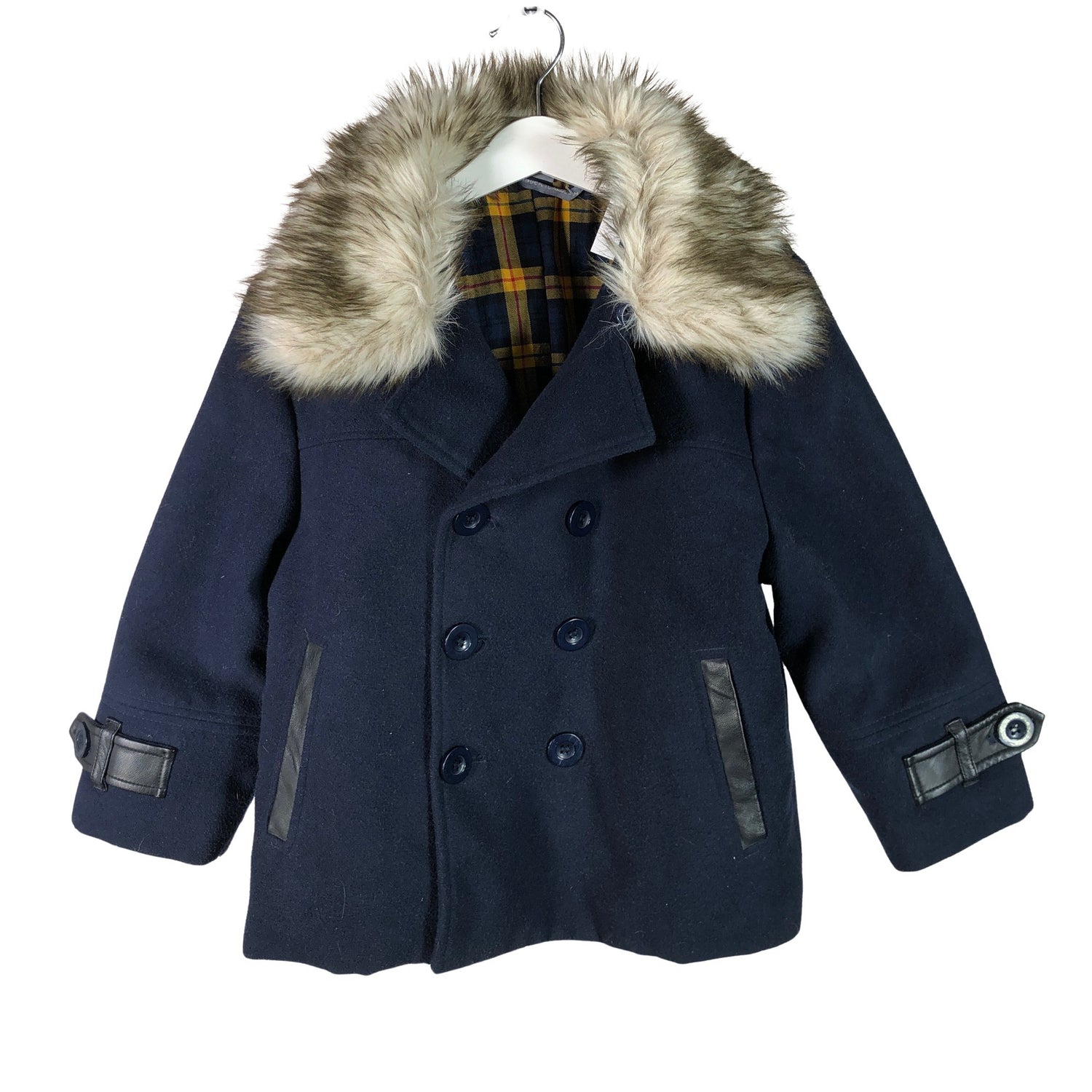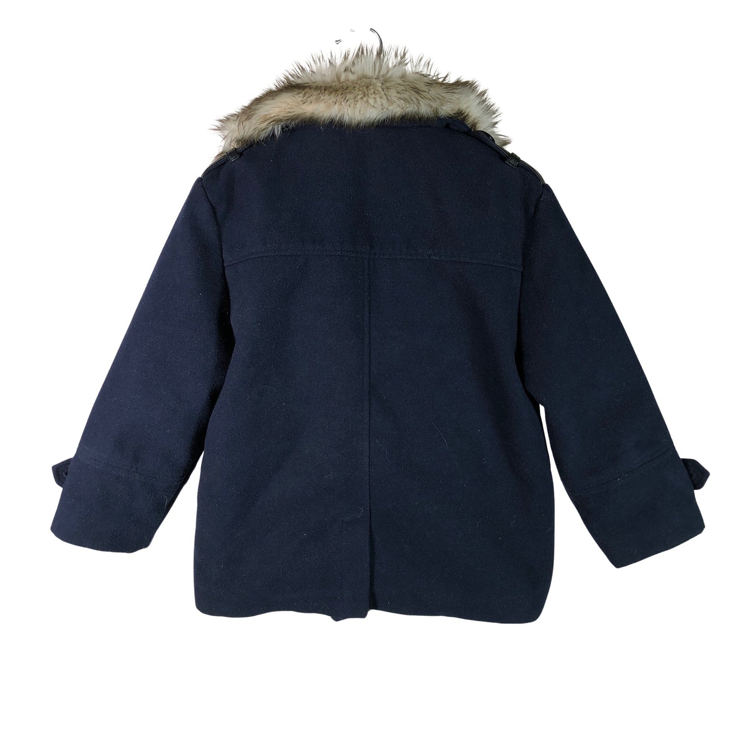 Edessä napit. Irrotettava karvakaulus. Tuotteen pinnassa on aavistus nukkaa. Tuote on muilta osin hyvässä kunnossa.