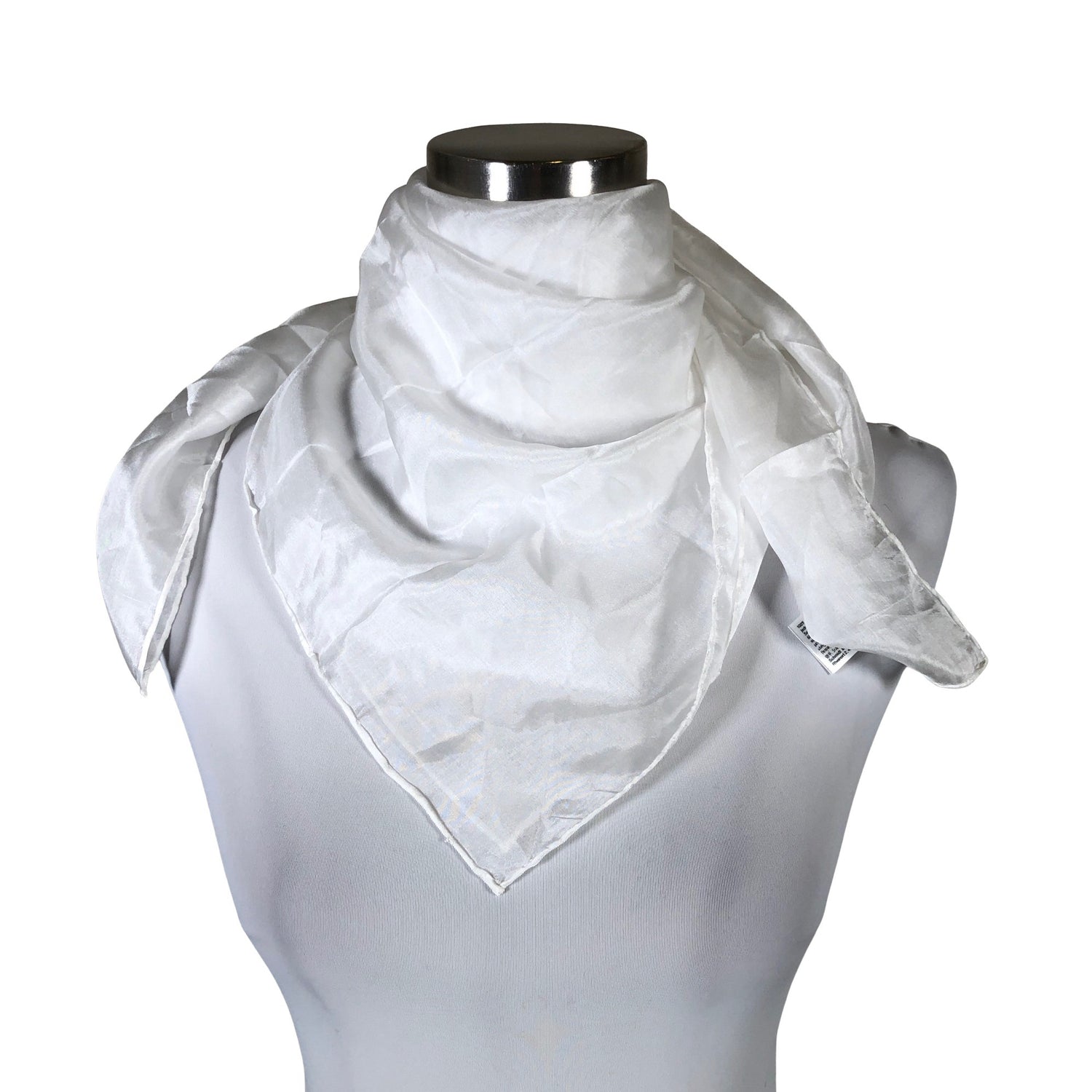 Silkkiä. Läpikuultavaa materiaalia. Langassa on kiiltoa. Malli: neliö. Tuotteen pinnassa on aavistus pesu-/käyttökulumaa. Yleisilme on siisti.