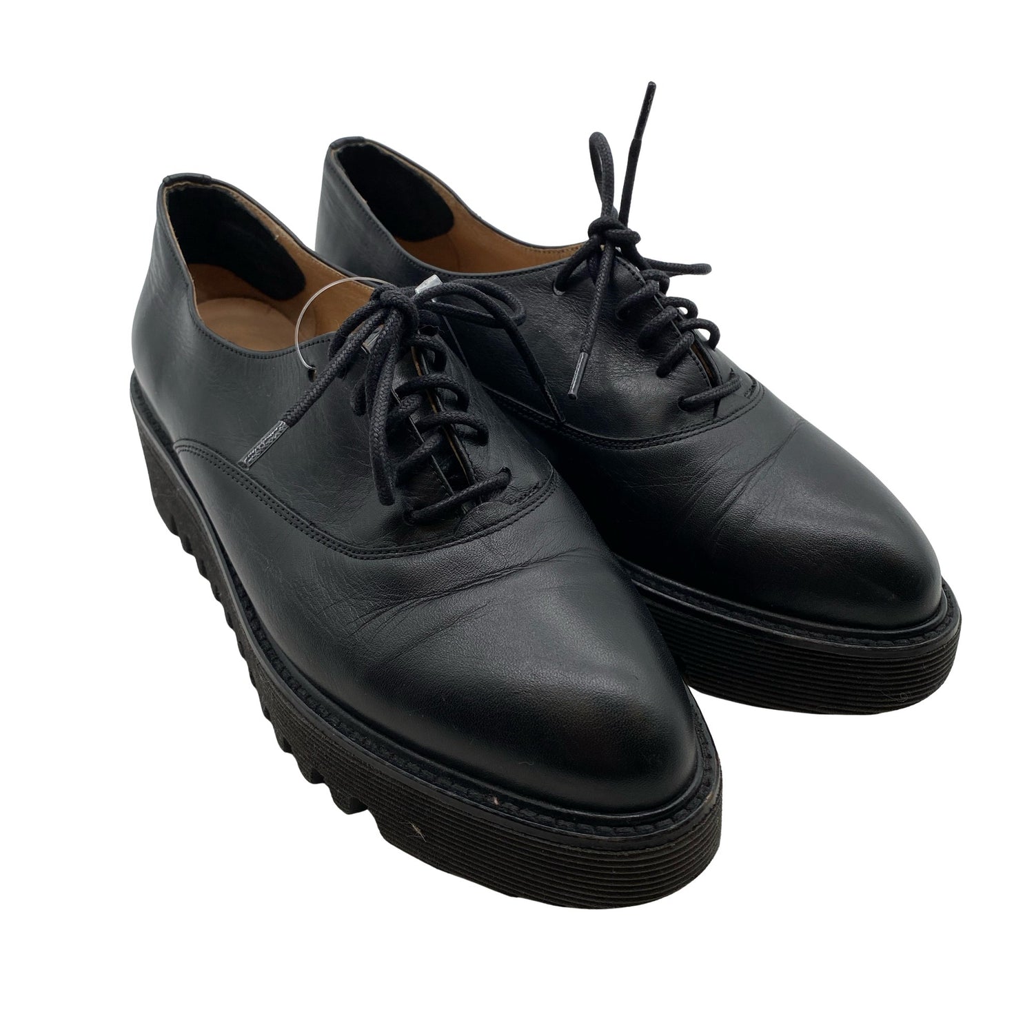 Paksut pohjat. Materiaalitieto puuttuu. Todennäköisesti nahkaa.