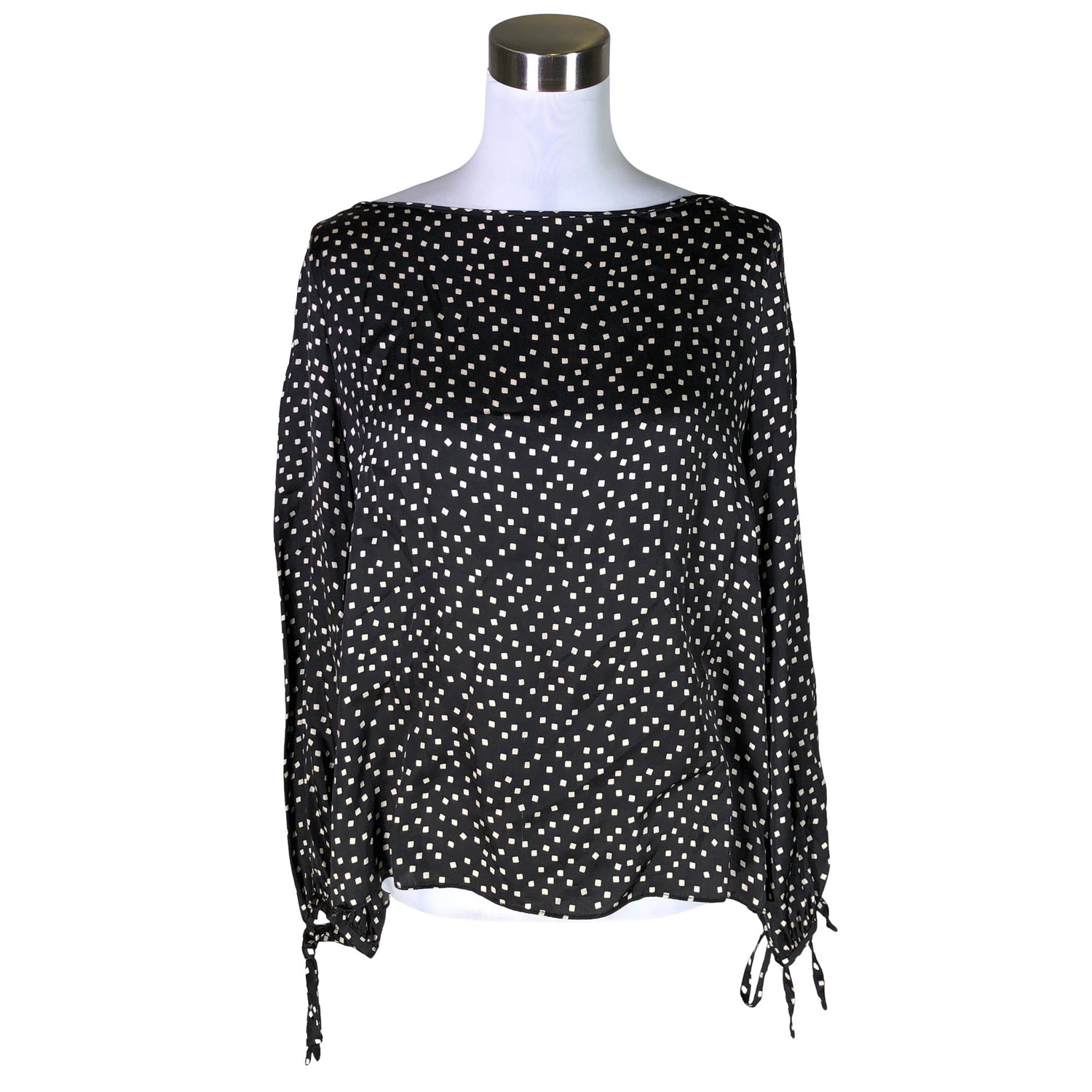 Materiaali ei jousta. Sivusaumoissa on halkiot. Tuotteen pinnassa on muutama langankiristymä/langannousu. Tuote on muilta osin hyvässä kunnossa.