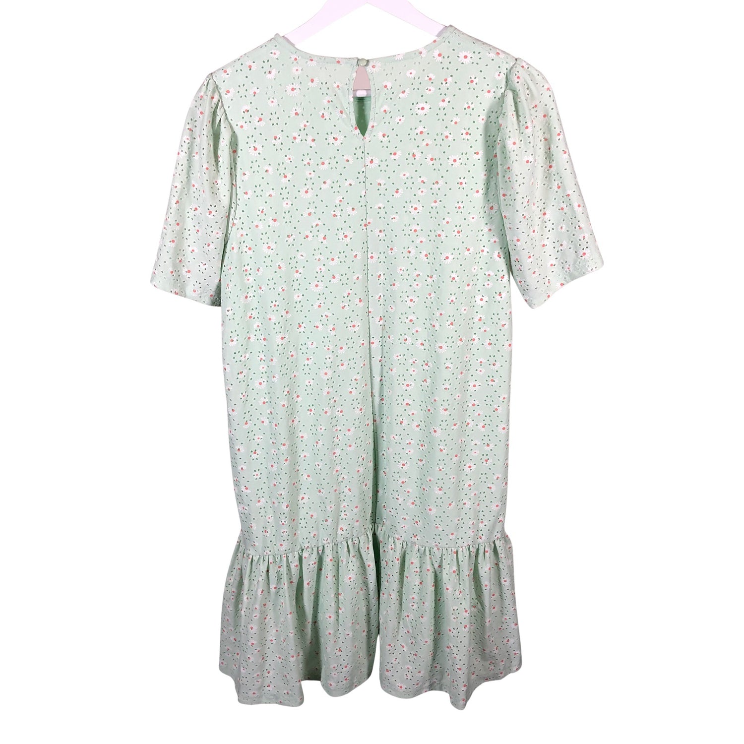 Trikoovuori. Kirjailtu. Materiaali joustaa. Väri: mintun vihreä. Tuotteen pinnassa on aavistus pesu-/käyttökulumaa. Yleisilme on siisti.