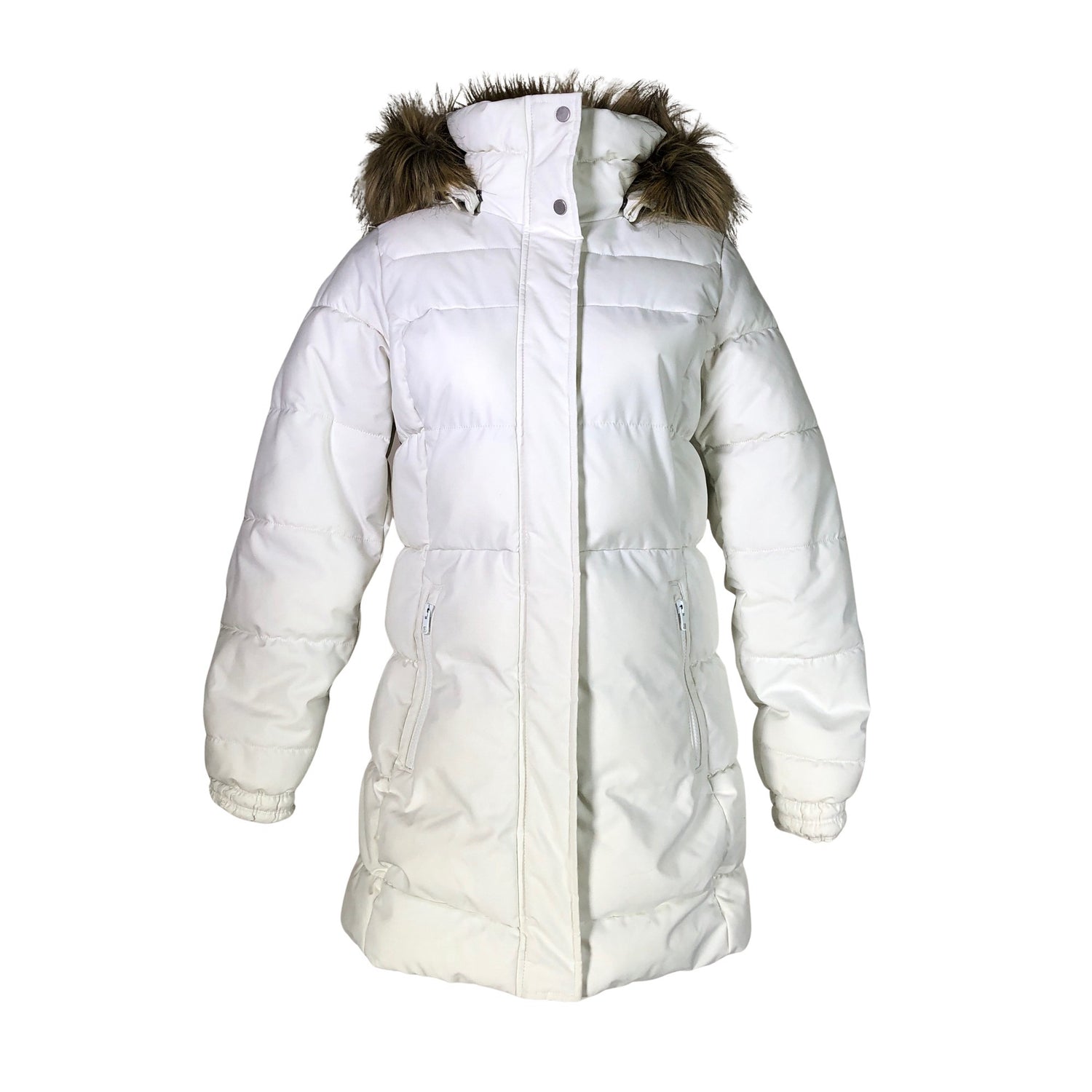 Irrotettava huppu. Irrotettava karvakaulus. Tuotteessa on kaksisuuntainen vetoketju.