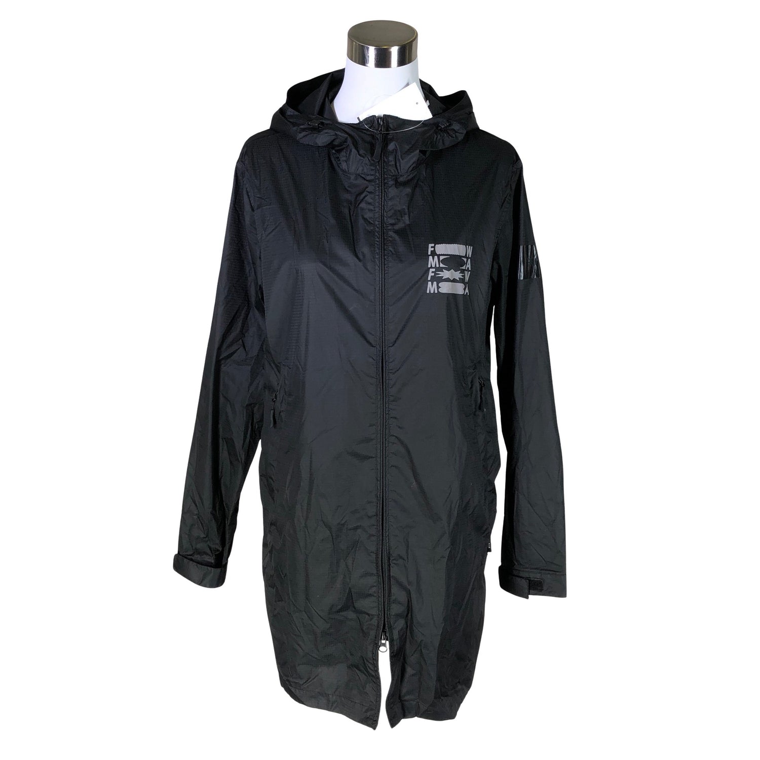 Ohutta materiaalia. Tuotteessa on kaksisuuntainen vetoketju. Tuotteen taskuissa on vetoketjut. Tuotteen pinnassa on hieman pesu-/käyttökulumaa. Yleisilme on siisti.