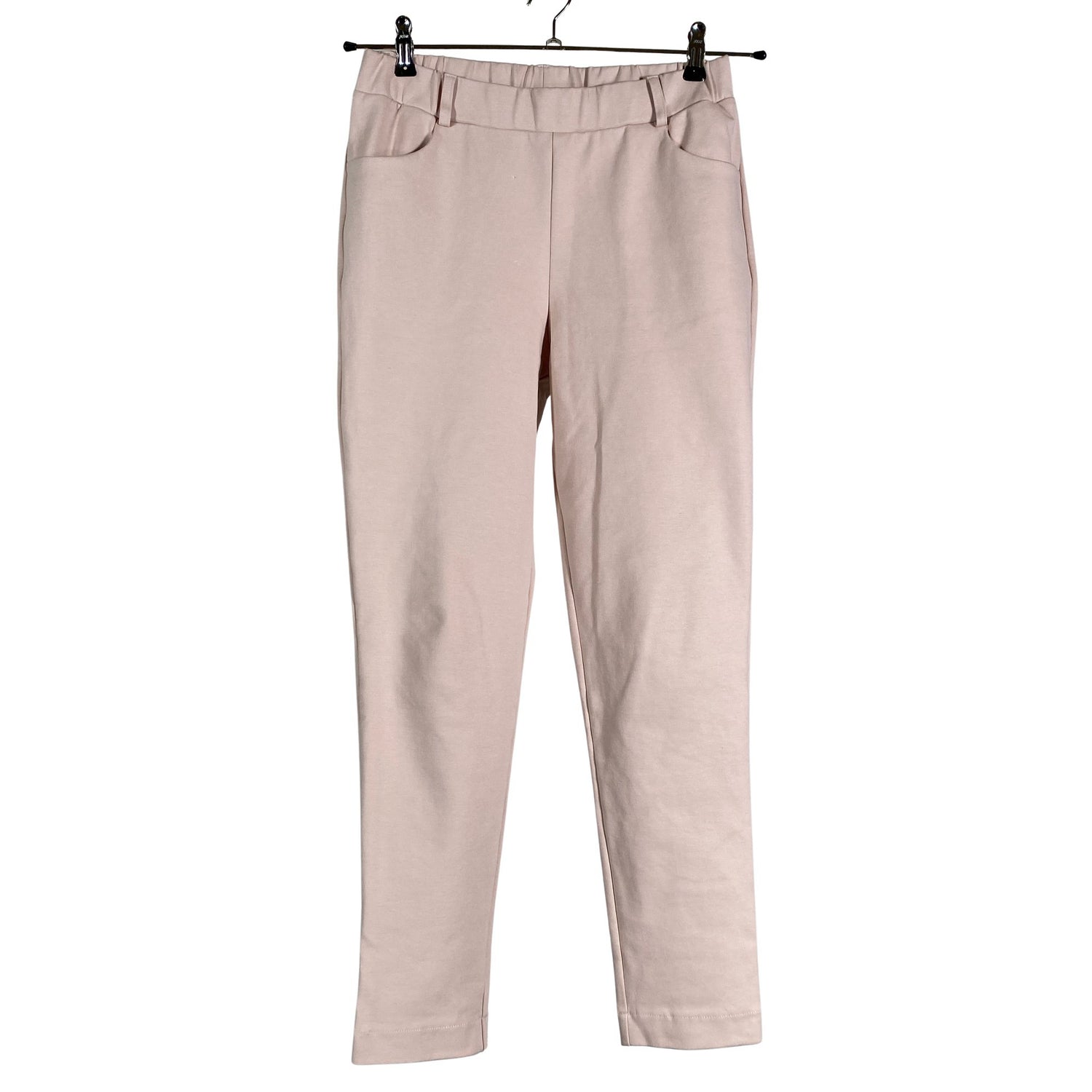 Puuvillasekoitetta. Materiaali joustaa. Tuotteen pinnassa on aavistus tummentumaa. Yleisilme on siisti.