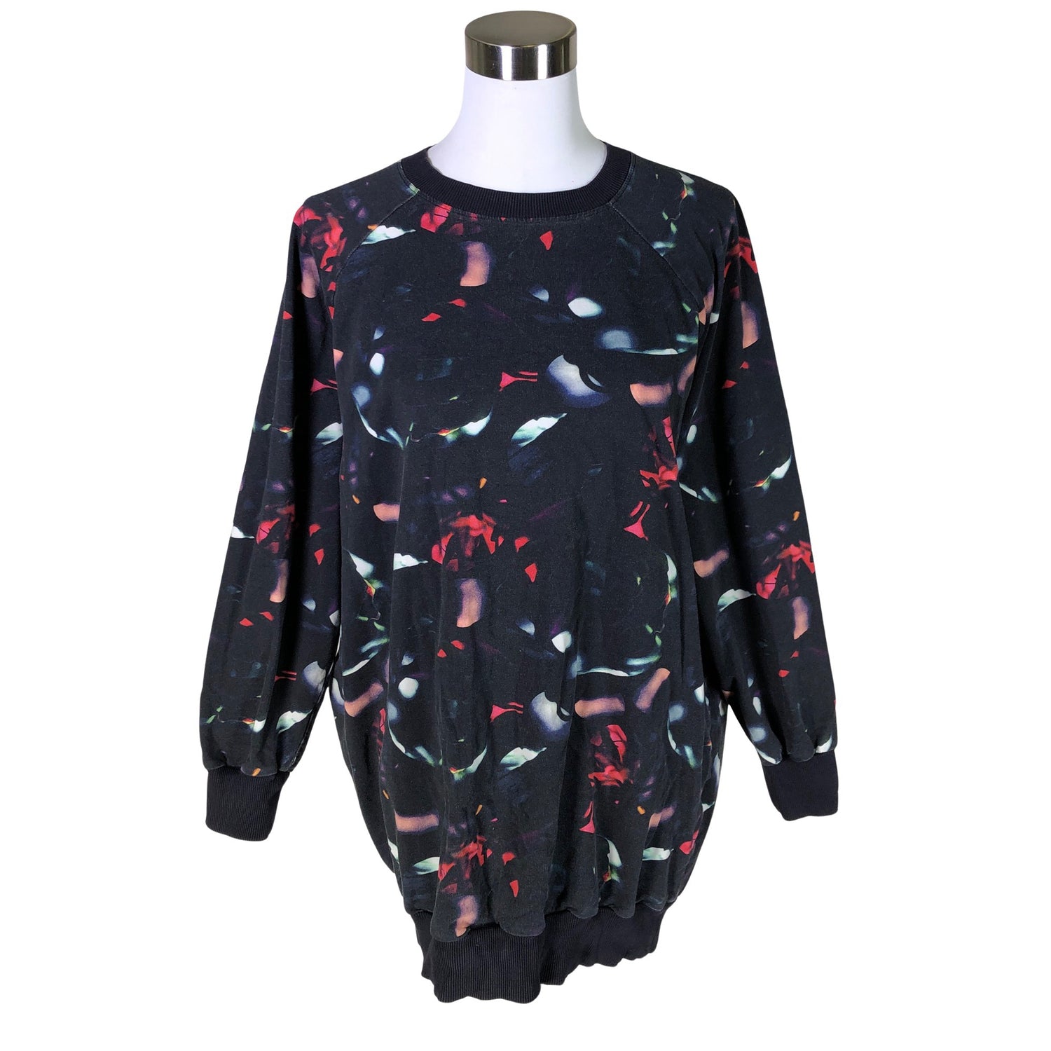 Kulutettu kuosi. Materiaali joustaa. Tuotteen pinnassa on pesu-/käyttökulumaa. Yleisilme on siisti.