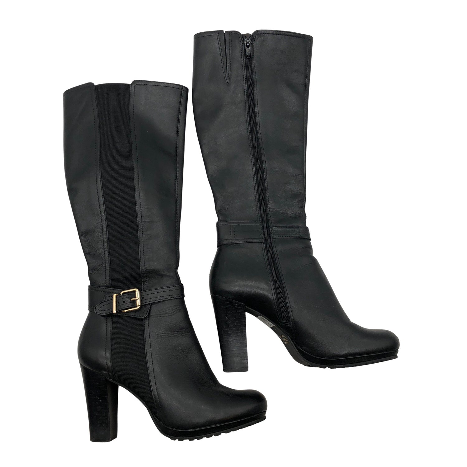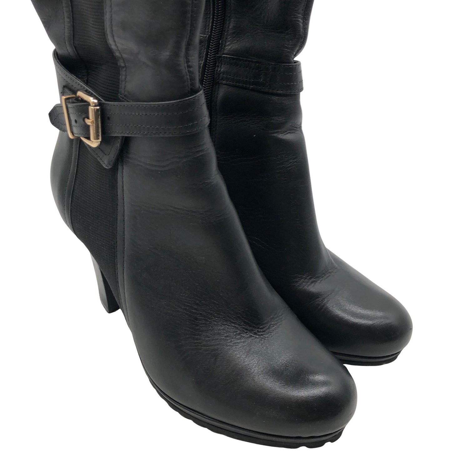 Nahkaa. Korkeat korot (yli 8 cm). Tuotteessa on vetoketju. Korkeat korot (yli 8 cm).