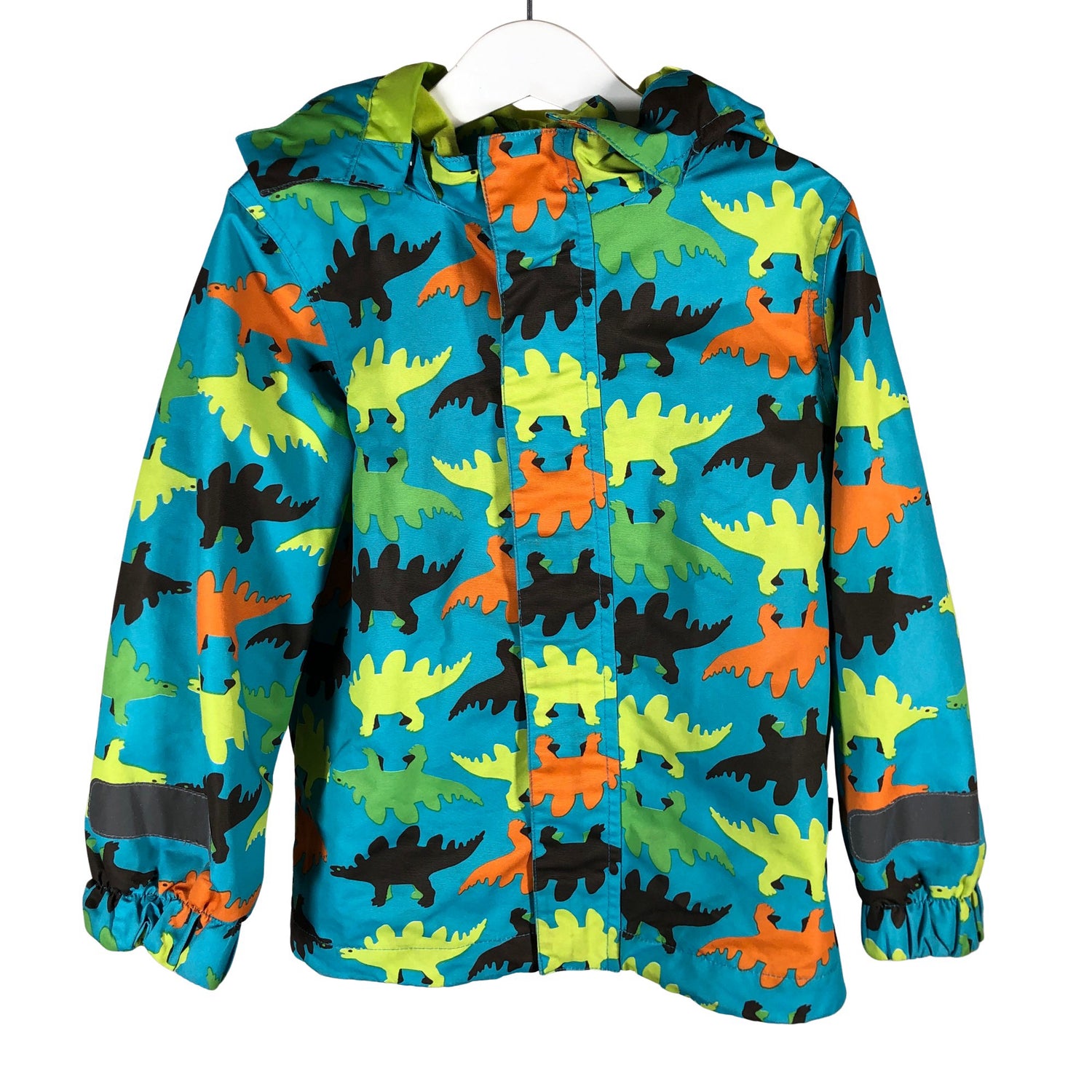 Irrotettava huppu. Tuotteessa on heijastavia yksityiskohtia. Tuotteen pinnassa on hieman pesu-/käyttökulumaa. Yleisilme on siisti.