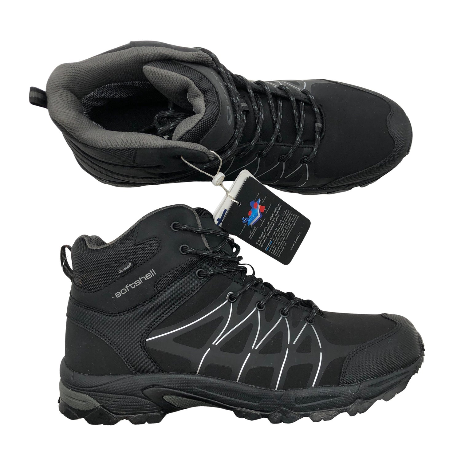 Tuotteen pinnassa on varastoinnissa tullutta likaa.Tuote on muilta osin uudenveroisessa kunnossa. Malli: Nervi Mid DX M Trekking. DrymaxX -merkintä. Softshell. Solmittava malli. Mukana alkuperäinen pakkaus.