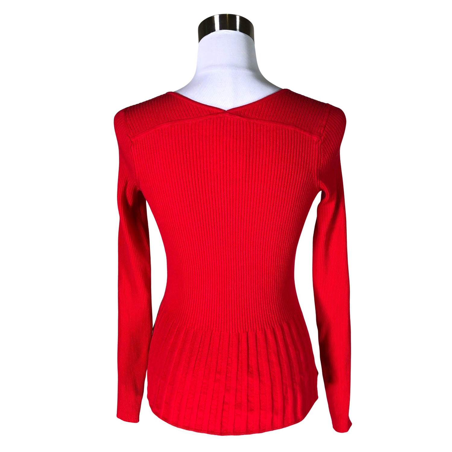 Ribbineulosta. Peplum-helma. Materiaali on hyvin joustavaa. Tuotteen pinnassa on hieman pesu-/käyttökulumaa. Yleisilme on siisti.