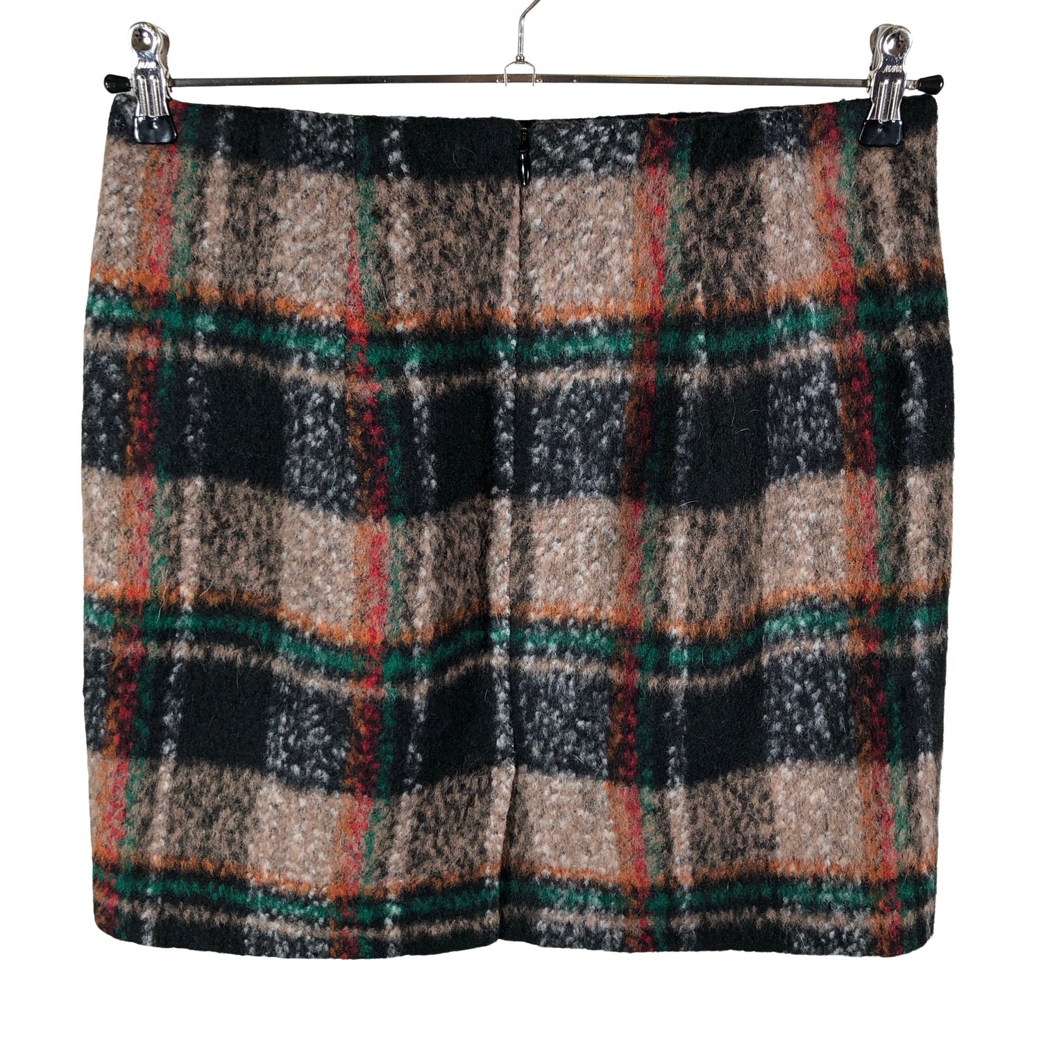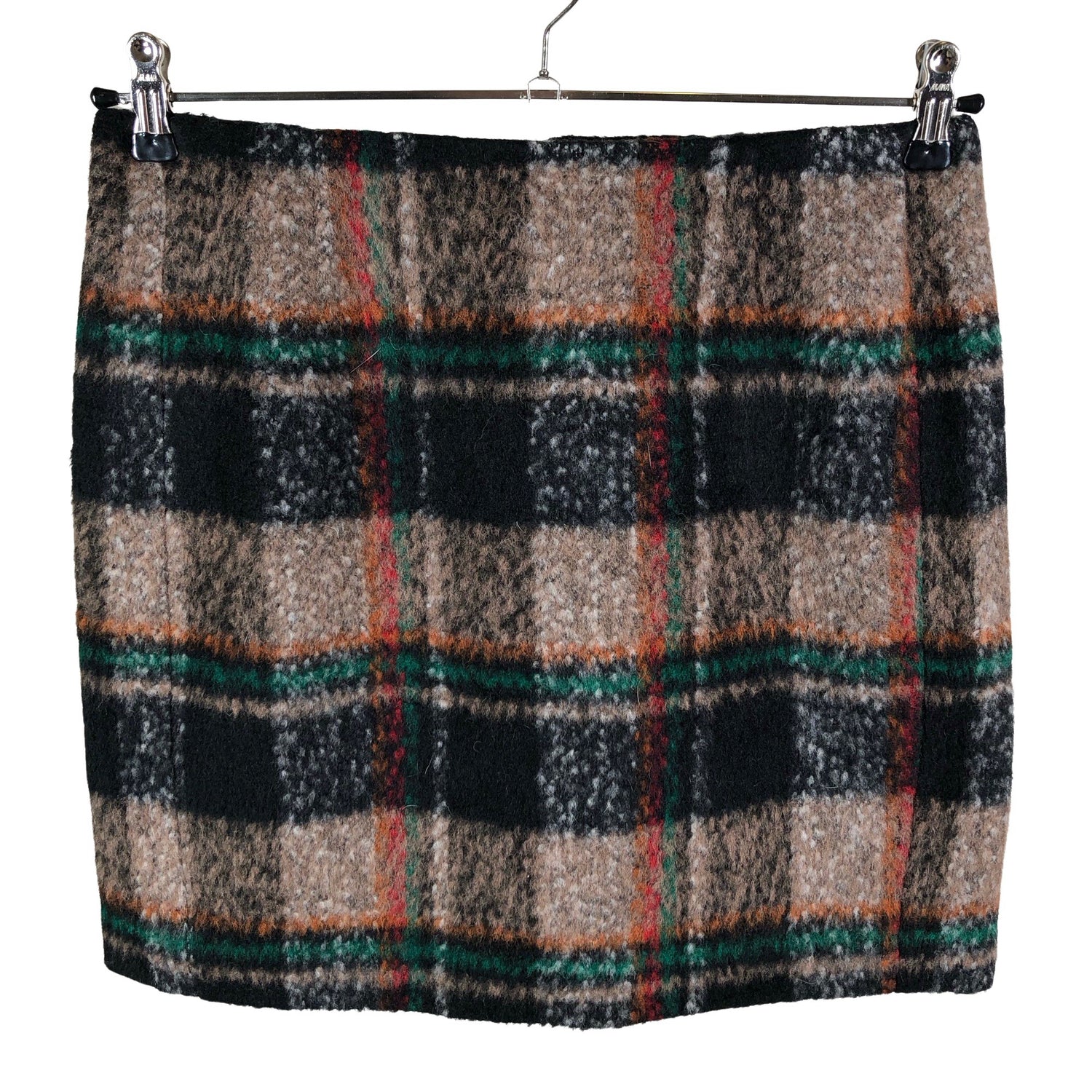 Joustava vyötärö. Villasekoitetta. Villakangasta. Tuotteessa on ohut vuori. Vetoketju takana. Takasaumassa on halkio. Irtokarvoja pinnalla. Tuotteen pinnassa on aavistus pesu-/käyttökulumaa. Yleisilme on siisti.