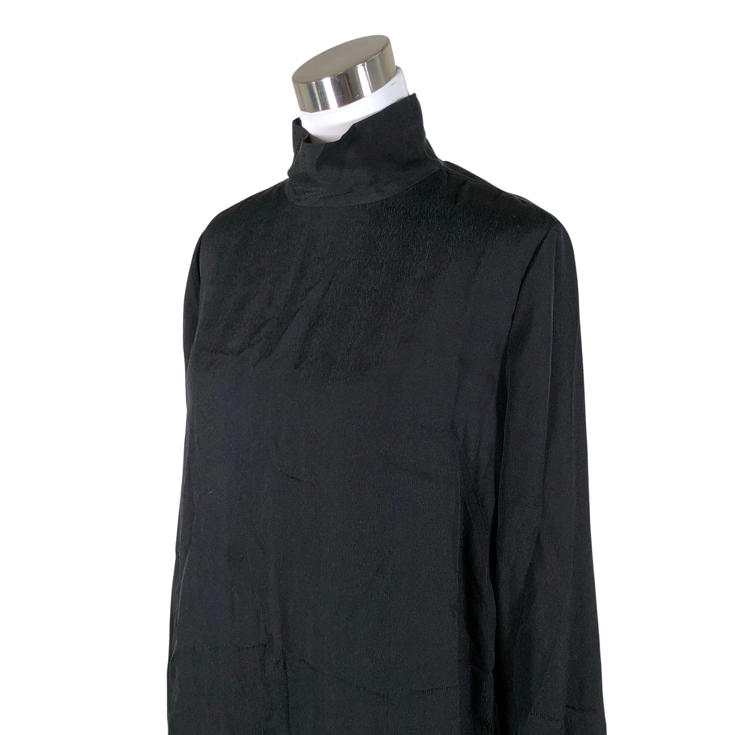 Silkkiä. Ohutta materiaalia. Korkea kaulus. Sivusaumoissa on halkiot. Materiaali ei jousta.