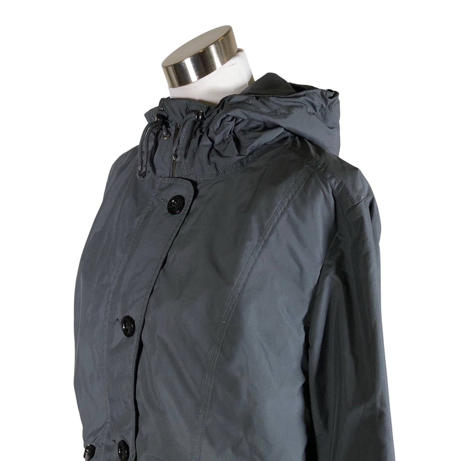 Malli: Nilla. Tuotteessa on huppu. Kiristysnauha vyötäröllä. Kauluksen sisäpuolella on aavistus tummentumaa. Tuote on muilta osin hyvässä kunnossa.