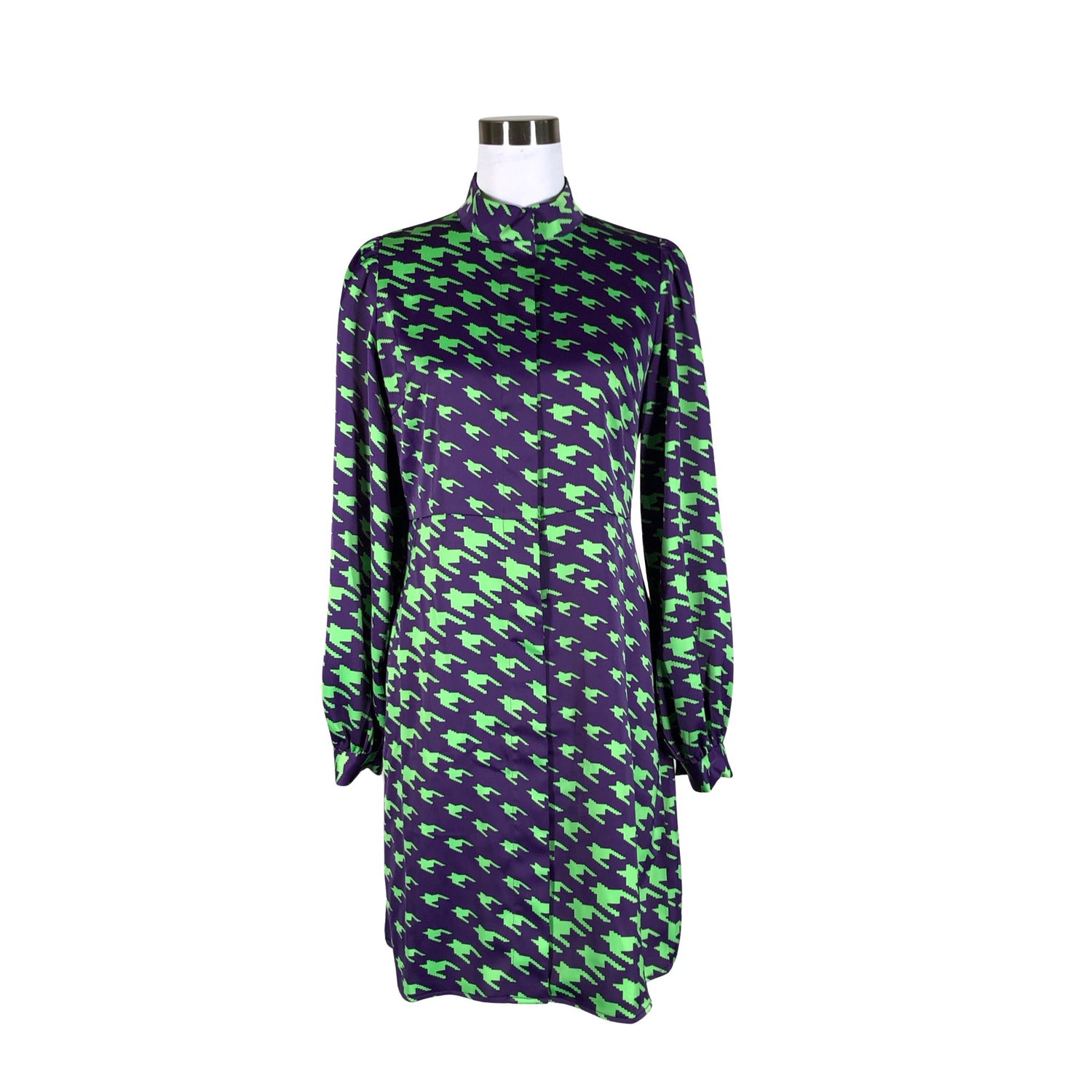 Edessä napit. Piilonapitus. Langassa on kiiltoa. Laskeutuvaa materiaalia. Materiaali ei jousta.
