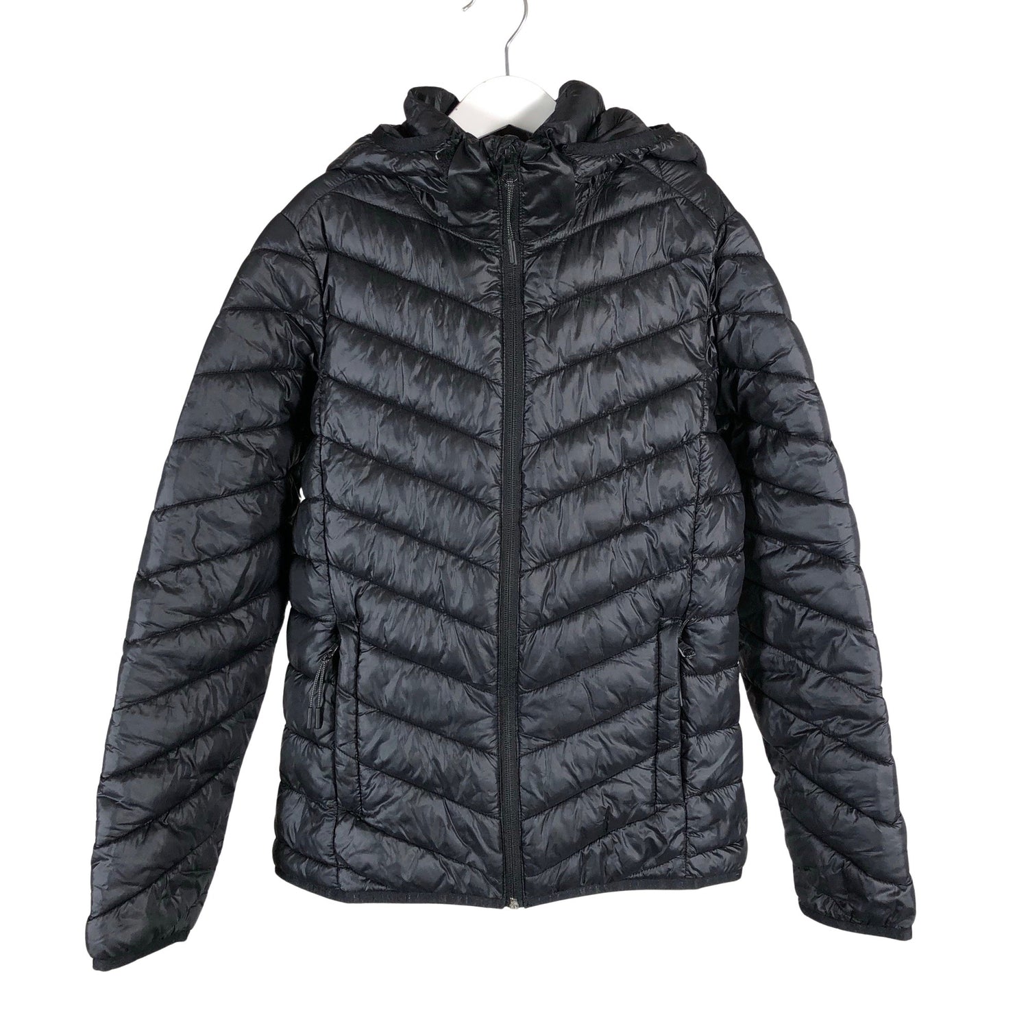 Tuotteen taskuissa on vetoketjut. Irrotettava huppu. Tuotteen pinnassa on hieman pesu-/käyttökulumaa. Yleisilme on siisti.