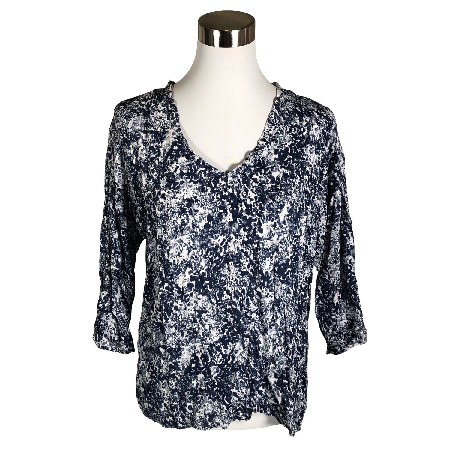 Materiaali ei jousta. Vajaamittaiset hihat. Tuotteen pinnassa on hieman pesu-/käyttökulumaa. Yleisilme on siisti.
