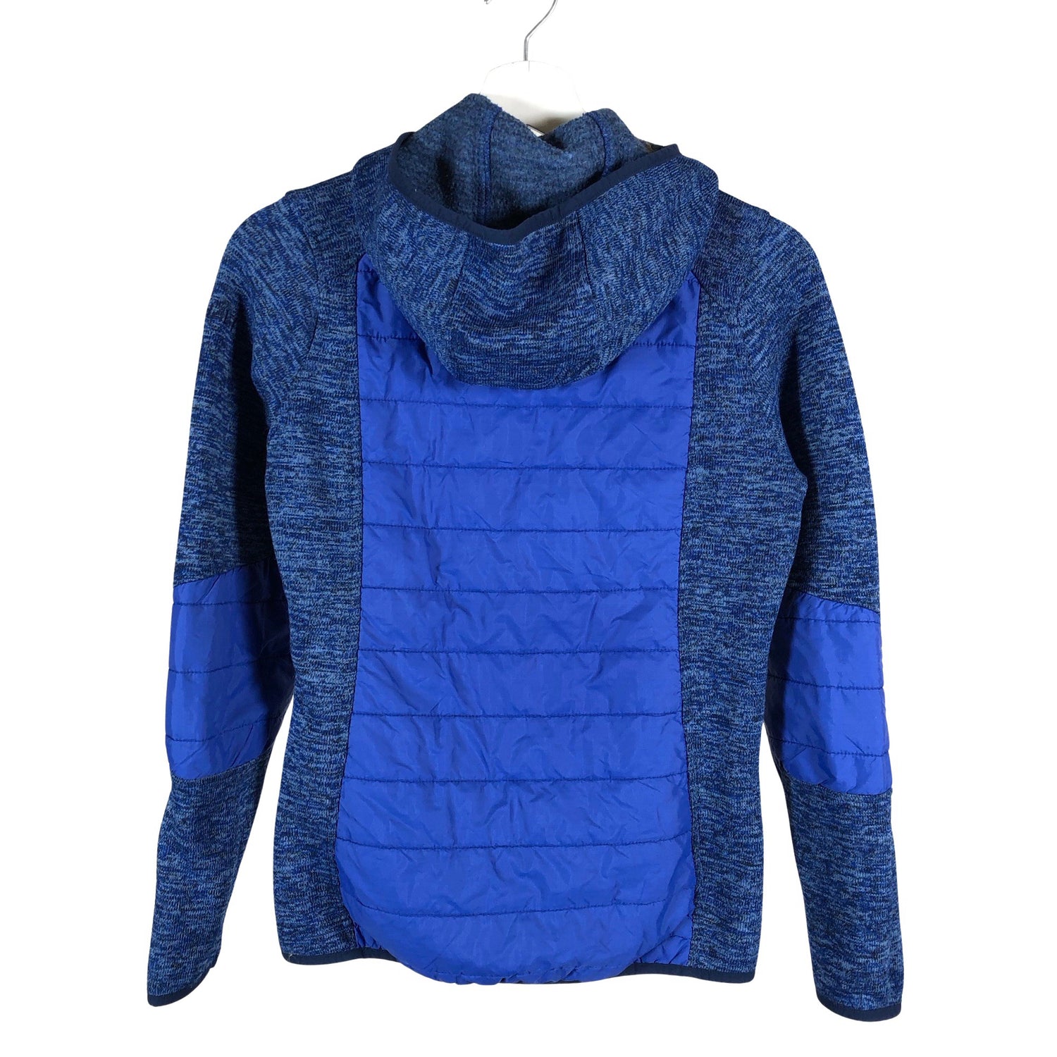 Tuote on osittain topattu. Kevyesti topattu. Tuote on osin neulosta. Kääntöpuoli fleeceä. Tuotteen pinnassa on hieman pesu-/käyttökulumaa. Yleisilme on siisti.