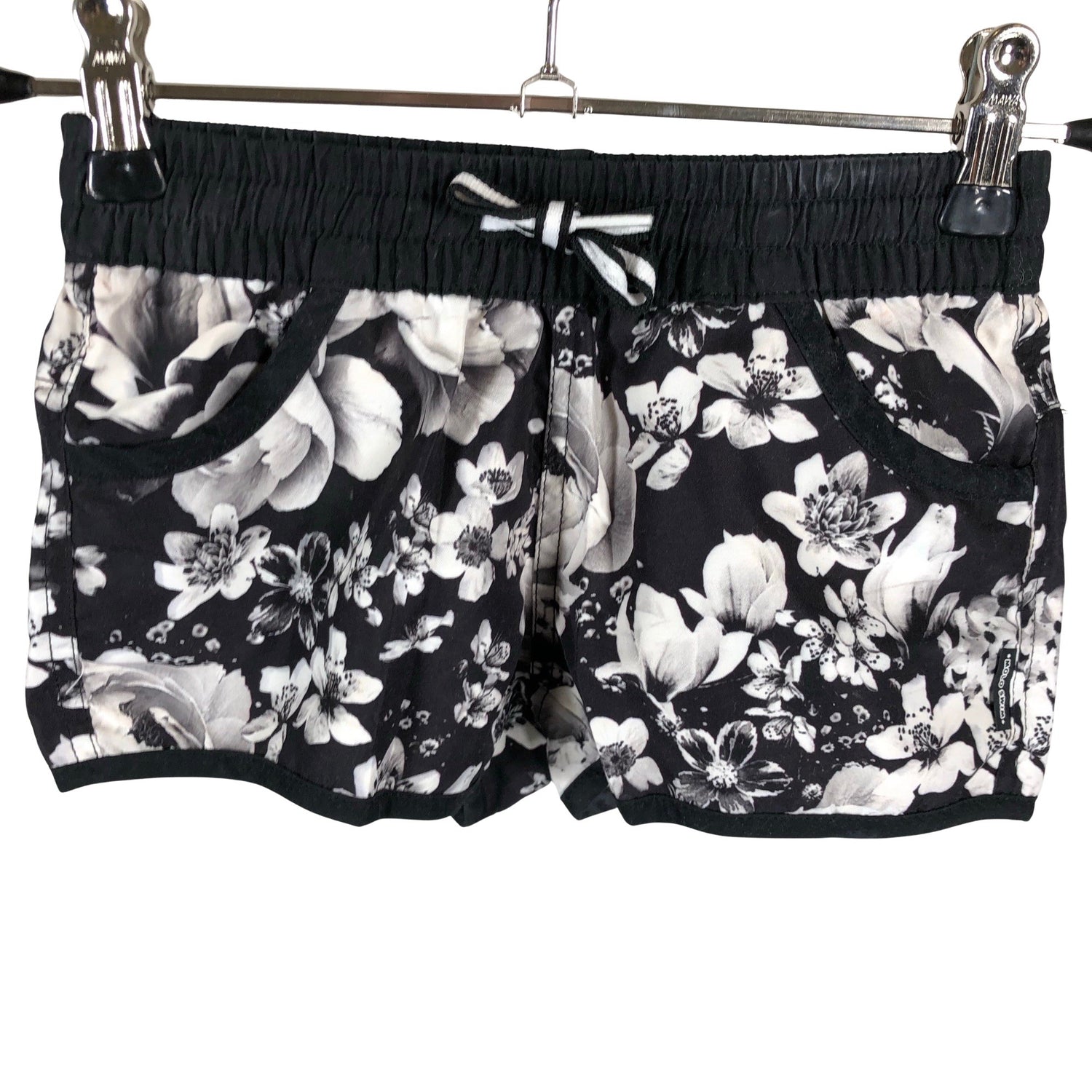 Materiaali joustaa hieman. Kiristysnauha vyötäröllä. Tuotteen pinnassa on hieman pesu-/käyttökulumaa. Yleisilme on siisti.