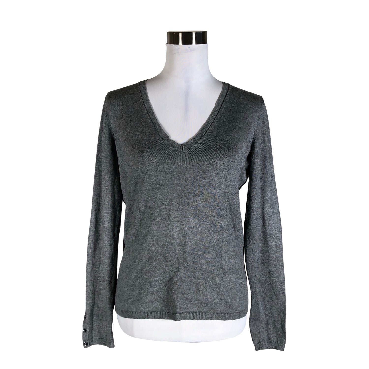 Ohutta neulosta. Materiaali joustaa. Tuotteen pinnassa on hieman pesu-/käyttökulumaa. Kainaloissa on hieman nukkaa. Yleisilme on siisti.