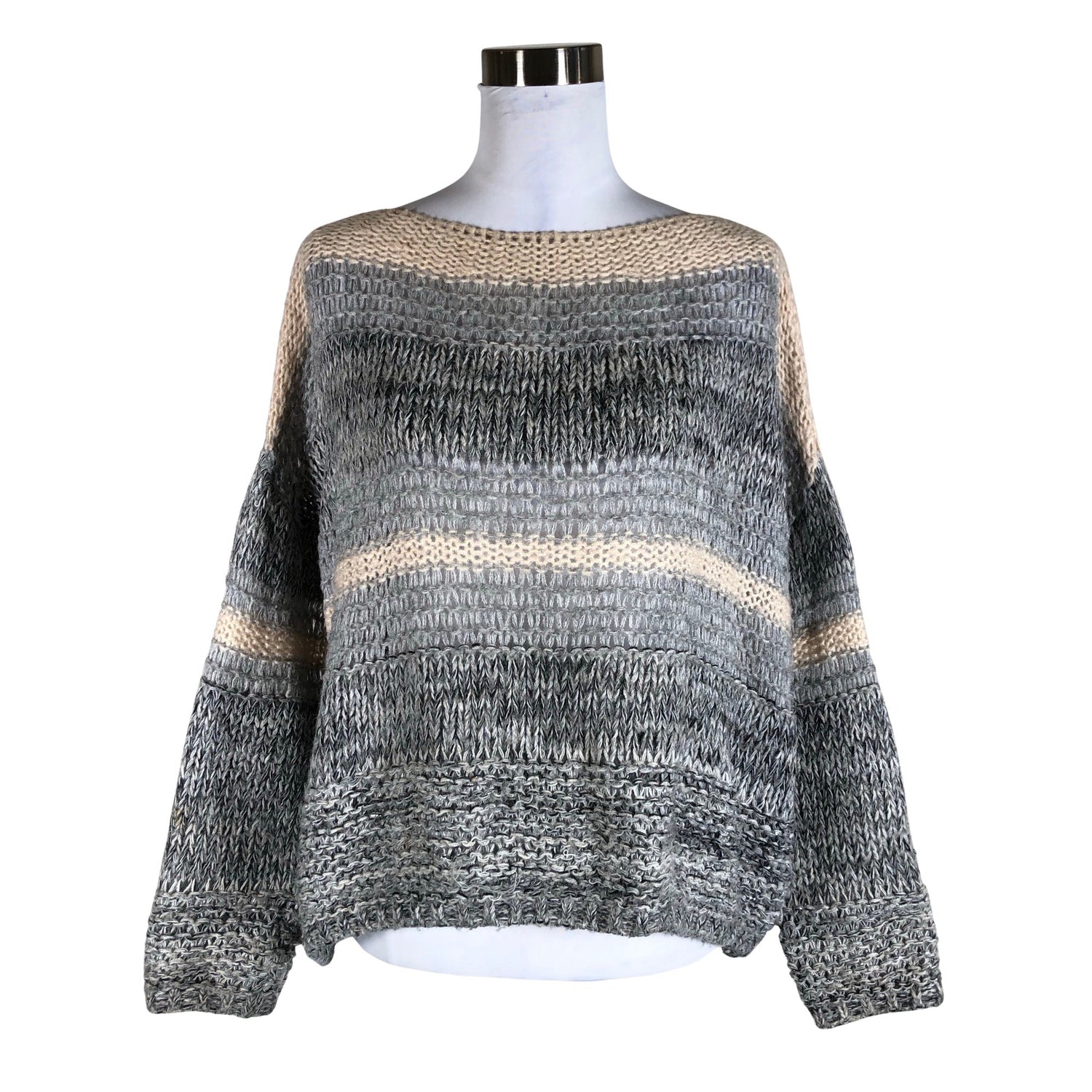 Harvaa neulosta. Tuotteen pinnassa on kimalletta. Väri: hopea. Tuotteen pinnassa on muutama langankiristymä/langannousu. Tuote on muilta osin hyvässä kunnossa.