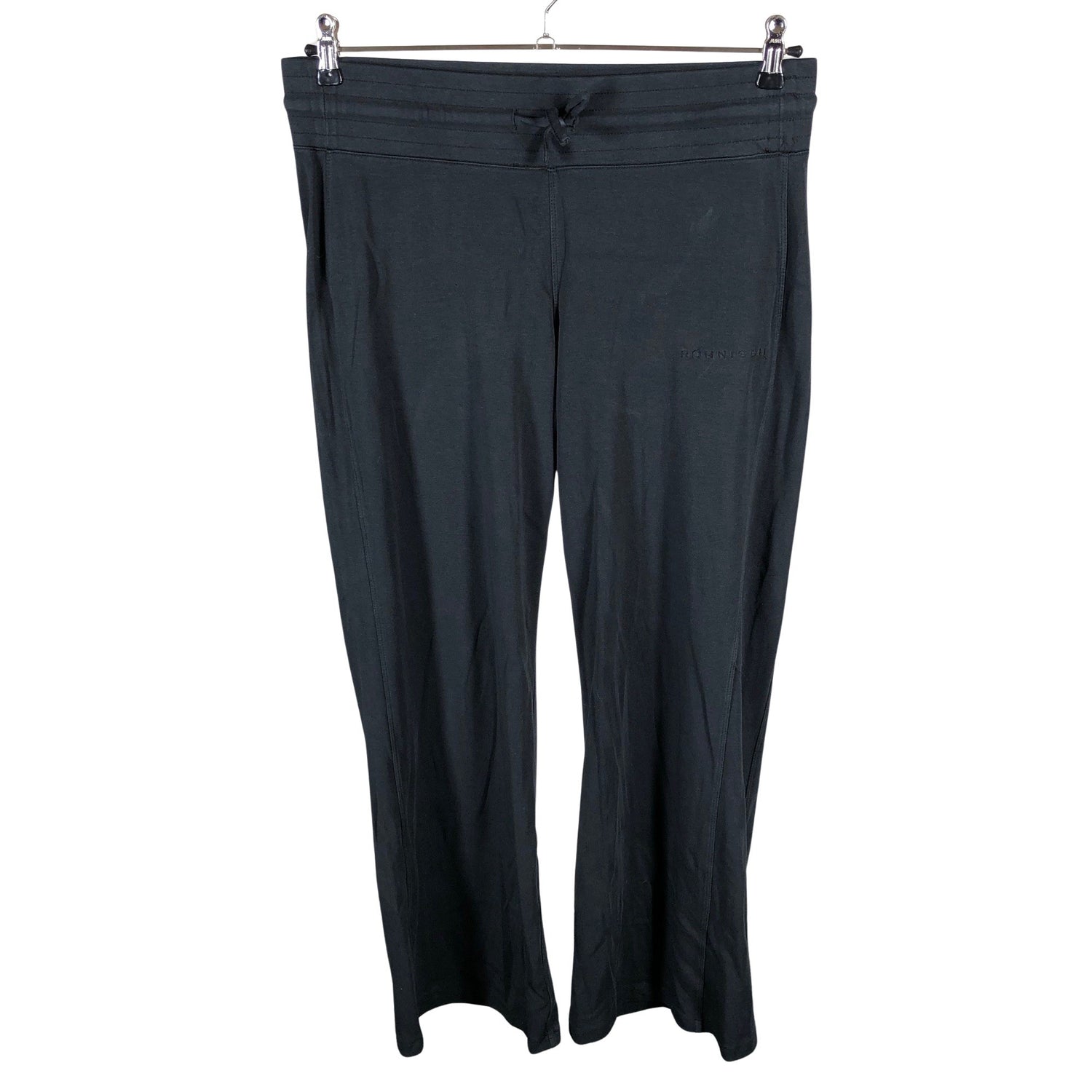 Joustava vyötärö. Leveät lahkeet. Kiristysnauha vyötäröllä. Tuotteen pinnassa on hieman pesu-/käyttökulumaa. Yleisilme on siisti.