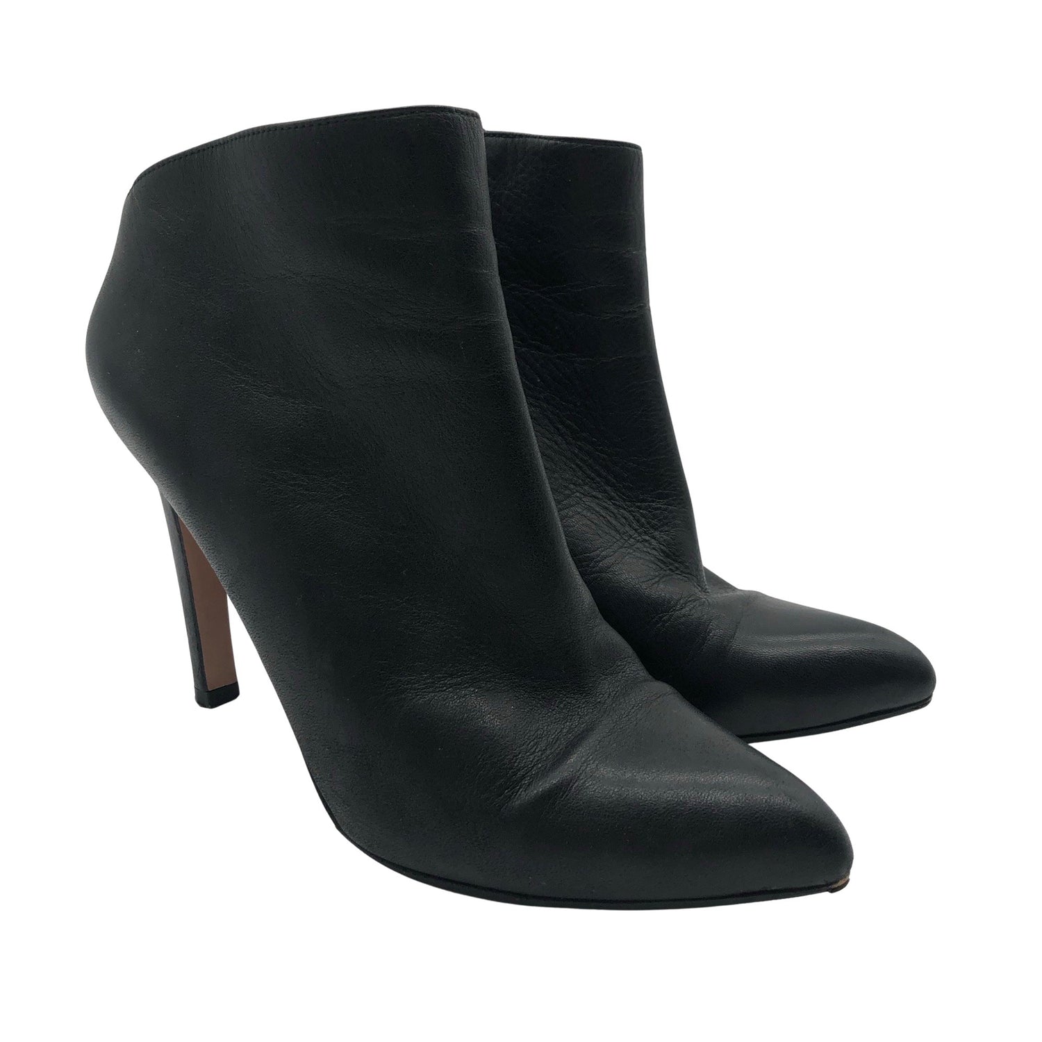 Nahkaa. Tuotteessa on vetoketju. Korkeat korot (yli 8 cm). Tuotteen pinnassa on aavistus pesu-/käyttökulumaa. Yleisilme on siisti.