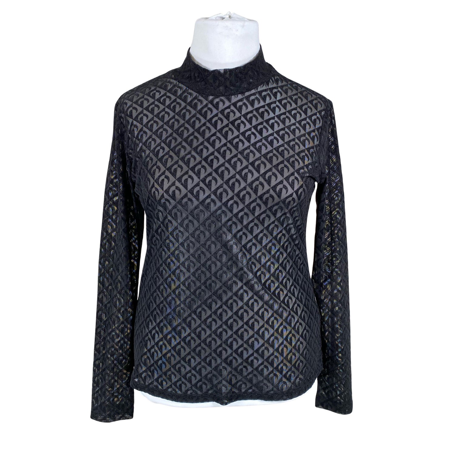 Läpikuultava kangas. Materiaali joustaa. Tuotteen pinnassa on aavistus nukkaa. Tuotteen pinnassa on hieman pesu-/käyttökulumaa. Yleisilme on siisti.