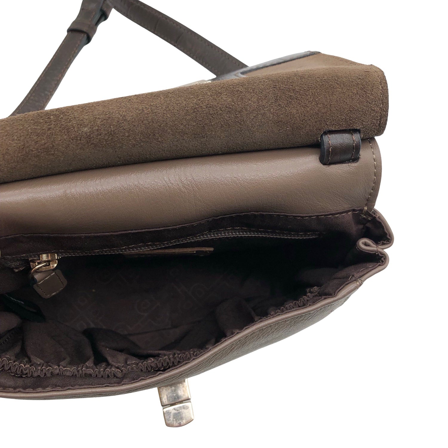 Crossbody. Olkahihnan pituus on säädettävissä. Tuotteen sisäpuolella on muutama haalea tahra. Tuote on muilta osin hyvässä kunnossa.