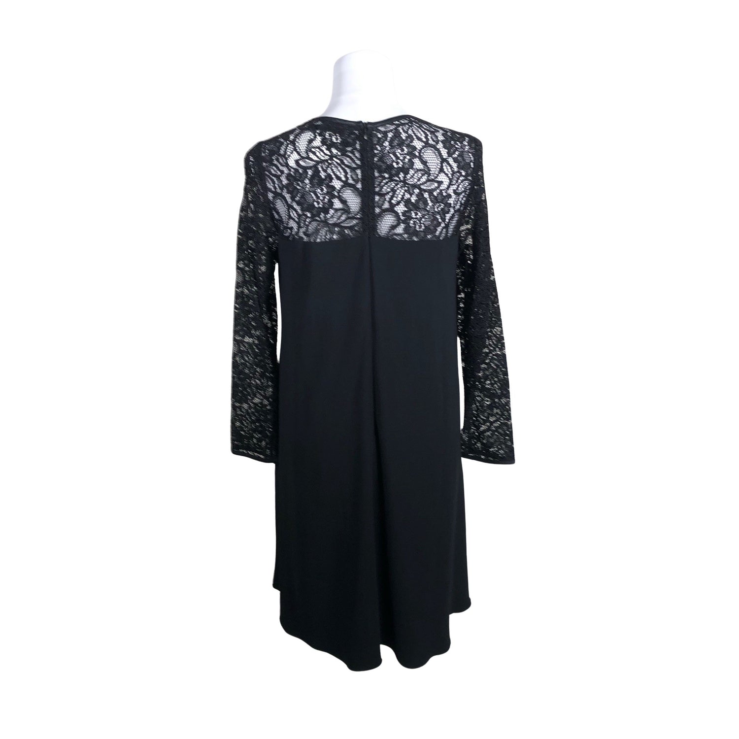 Vetoketju takana. Tuotteessa on ohut vuori. Materiaali ei jousta. Tuote on osin pitsiä.