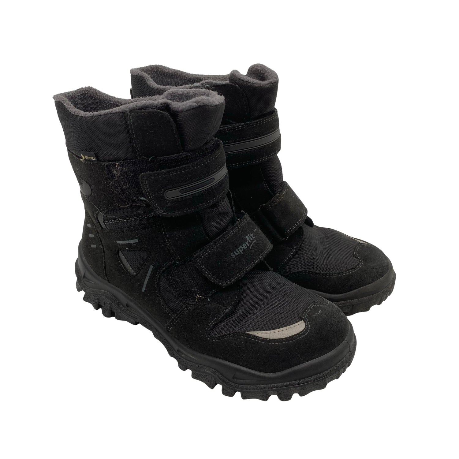 Tuotteessa on tarrakiinnitys. Gore-Tex -merkintä. Materiaalitieto puuttuu. Todennäköisesti nahkaa. Tuotteen pinnassa on hieman pesu-/käyttökulumaa. Tuote on muilta osin hyvässä kunnossa.