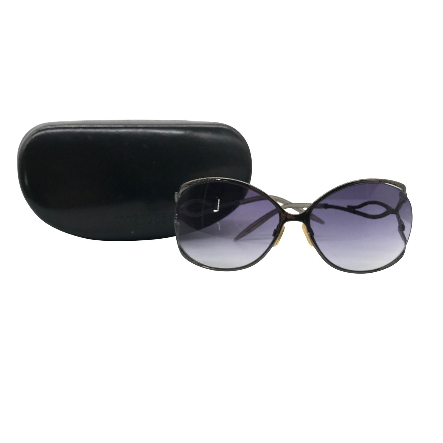 Malli: 095 07H. Siniset linssit. Liukuvärjätyt linssit. Oversized. Omassa kotelossaan. Hopeiset metalliosat. Sangoissa on pieni naarmu. Tuote on muilta osin hyvässä kunnossa.