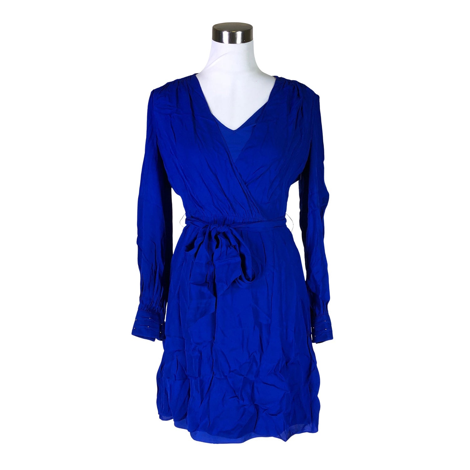 Tuotteeseen kuuluu vyö. Kietaisumalli. Materiaali ei jousta. Sivusaumassa on vetoketju. Alusmekko. Säädettävät olkaimet.