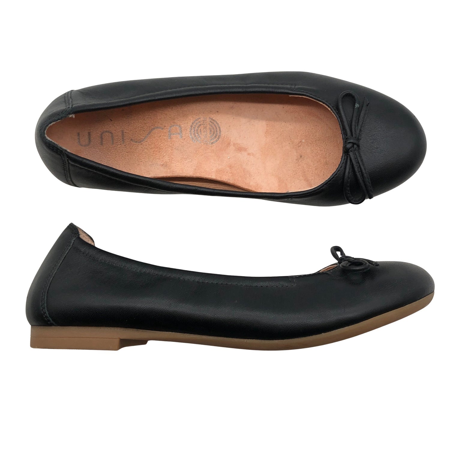 Unisa Ballerinat, koko 35. Materiaalitieto puuttuu. Todennäköisesti nahkaa. Tuotteen sisäpuolella on hieman kulumaa. Yleisilme on siisti.