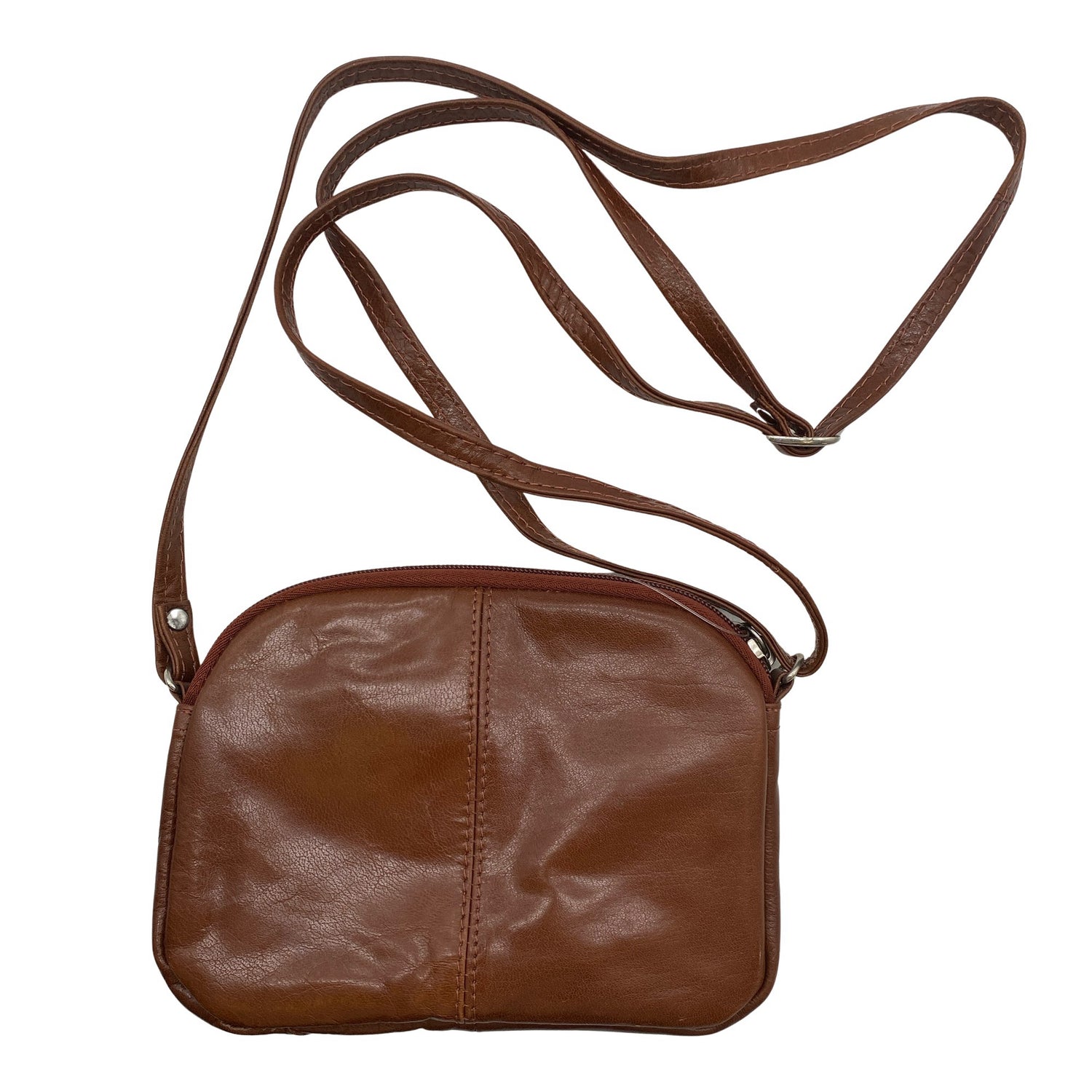Crossbody. Olkahihnan pituus on säädettävissä. Tuotteen pinnassa on aavistus pesu-/käyttökulumaa. Yleisilme on siisti.