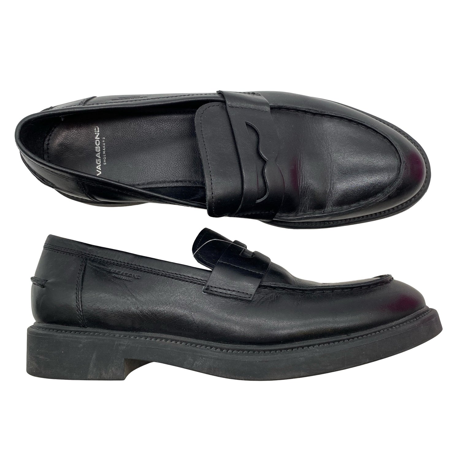Vagabond Loaferit, koko 41. Nahkaa. Tuotteen pinnassa on aavistus pesu-/käyttökulumaa. Tuote on muilta osin hyvässä kunnossa.