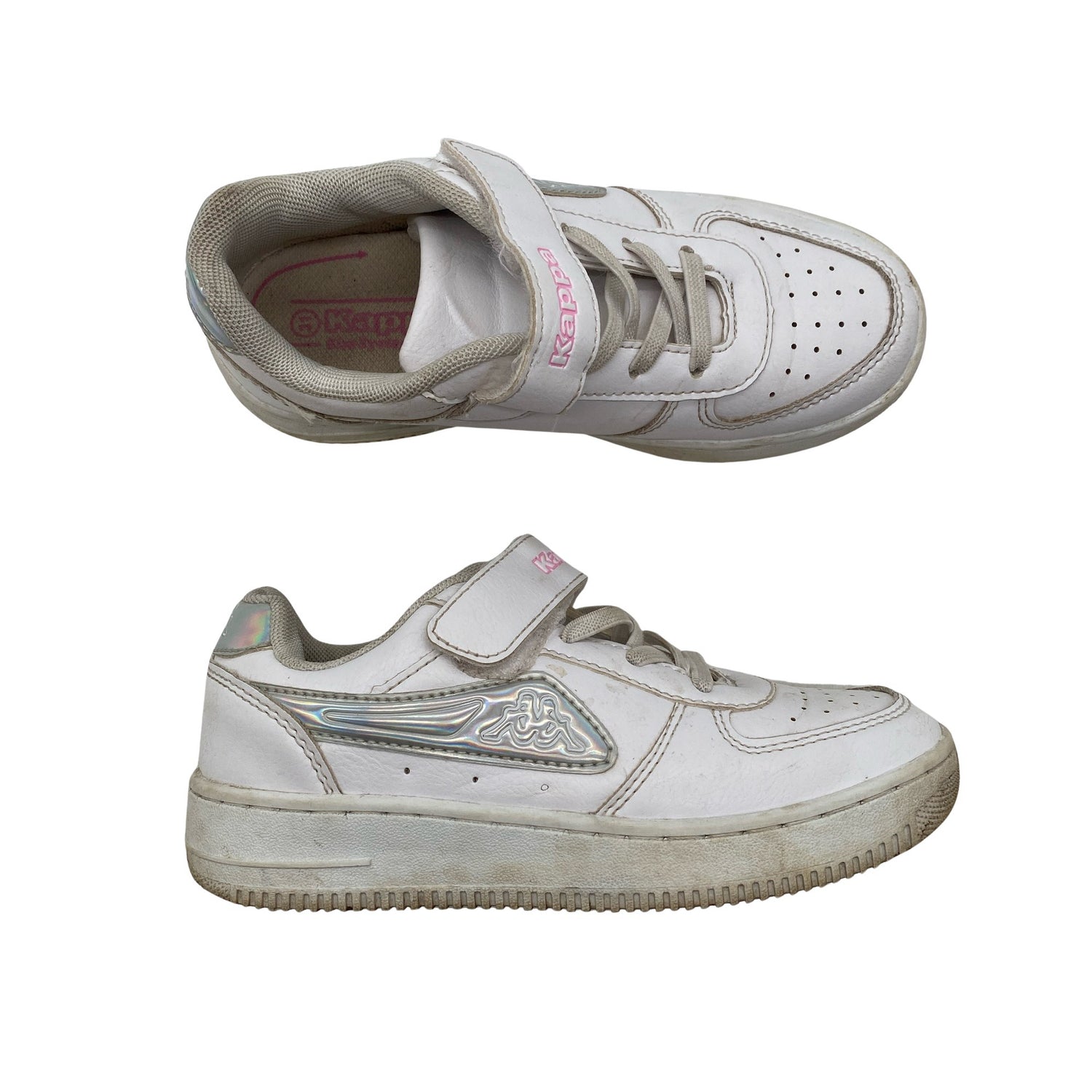 Kappa Tennarit, koko 31. Tuotteessa on tarrakiinnitys. Keinonahkaa. Tuotteen pinnassa on hieman pesu-/käyttökulumaa. Tuotteen pinnassa on hieman tummentumaa. Yleisilme on siisti.