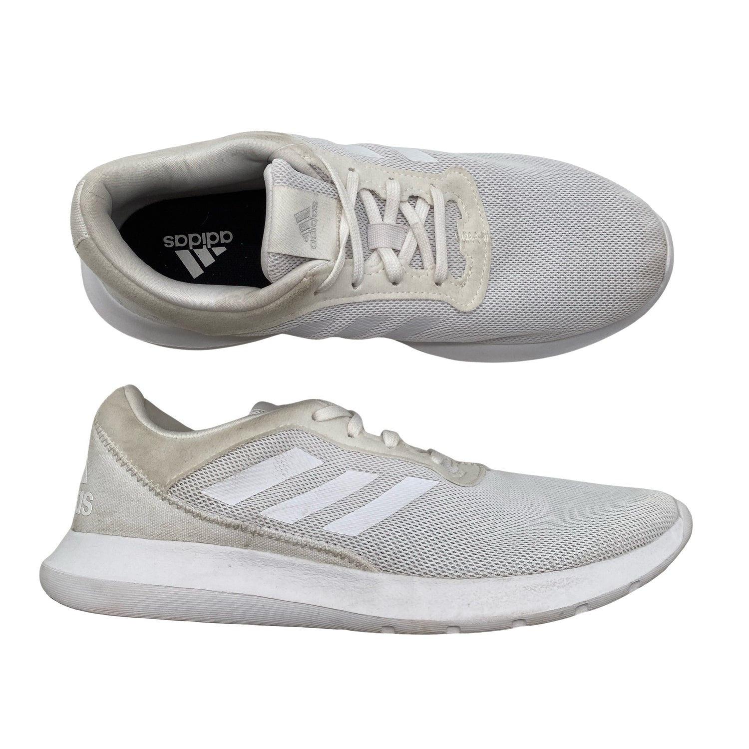 Adidas Lenkkarit, koko 38. Malli: RUNFALCON 5. Kauluksen sisäpuolella on aavistus tummentumaa. Yleisilme on siisti.