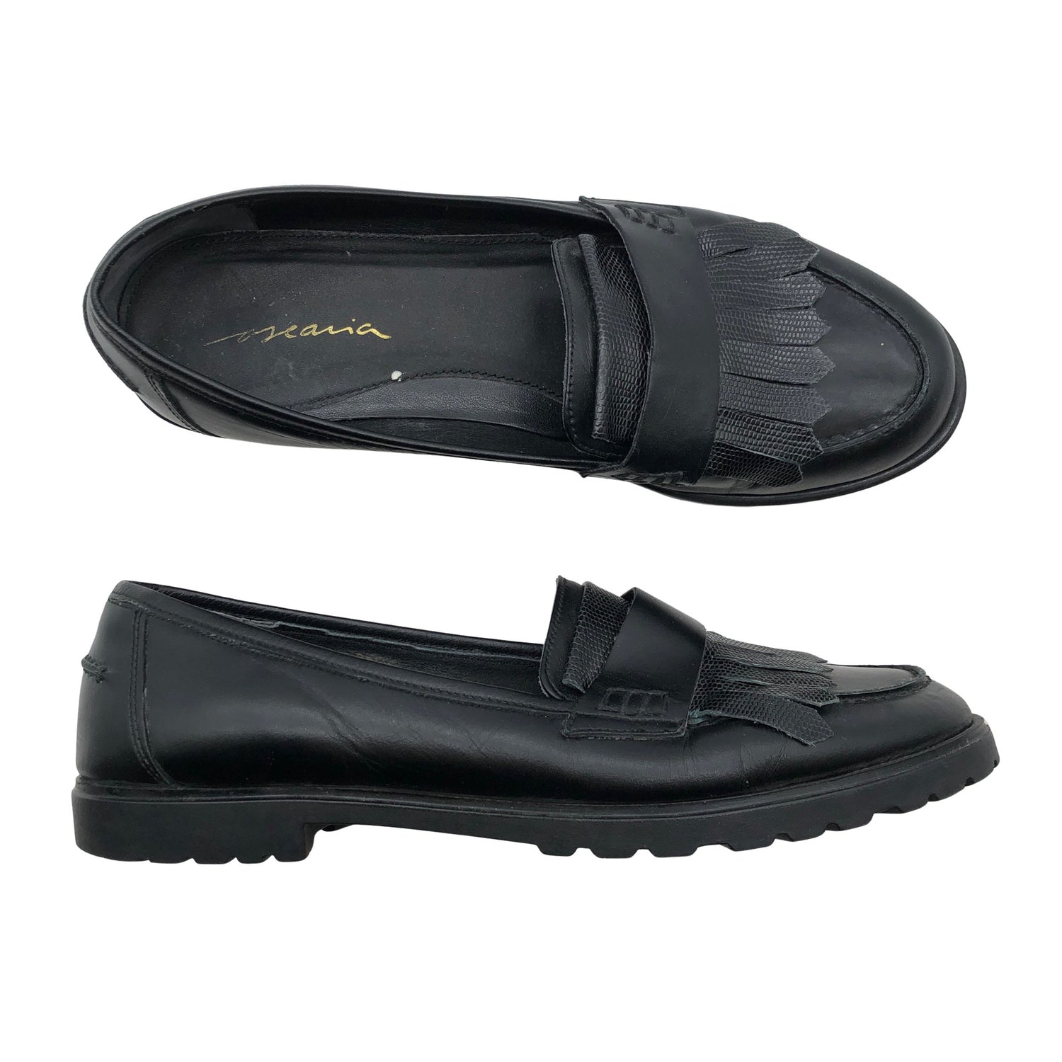 Oscania Loaferit, koko 41. Nahkaa. Tuotteen sisäpuolella on hieman kulumaa. Tuotteen pinnassa on hieman pesu-/käyttökulumaa. Yleisilme on siisti.