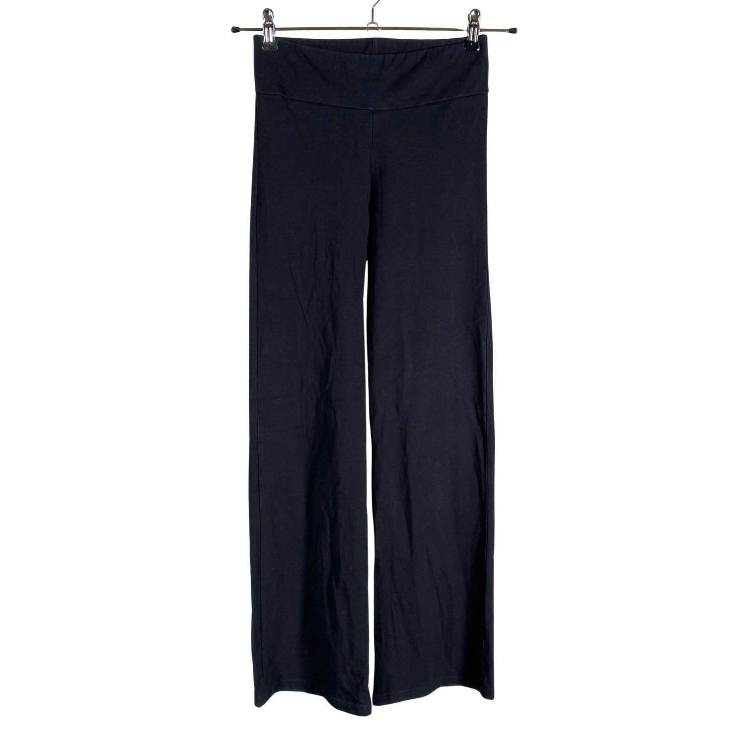 Korkea vyötärö. Leveät lahkeet. Trikoota. Tuotteen pinnassa on aavistus pesu-/käyttökulumaa. Yleisilme on siisti.