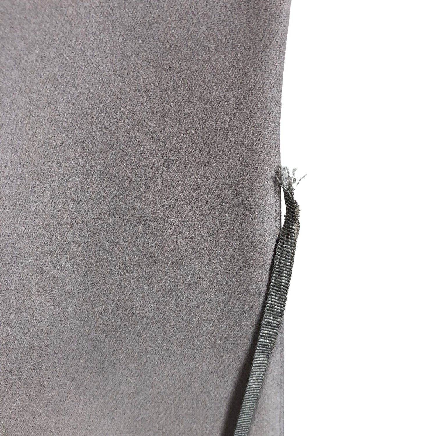 Tuotteeseen kuuluu vyö. Väri: harmaanruskea. Vyön kiinnityslenkki/lenkit on rikki. Katso lisäkuvat. Tuotteen pinnassa on aavistus nukkaa. Yleisilme on siisti.
