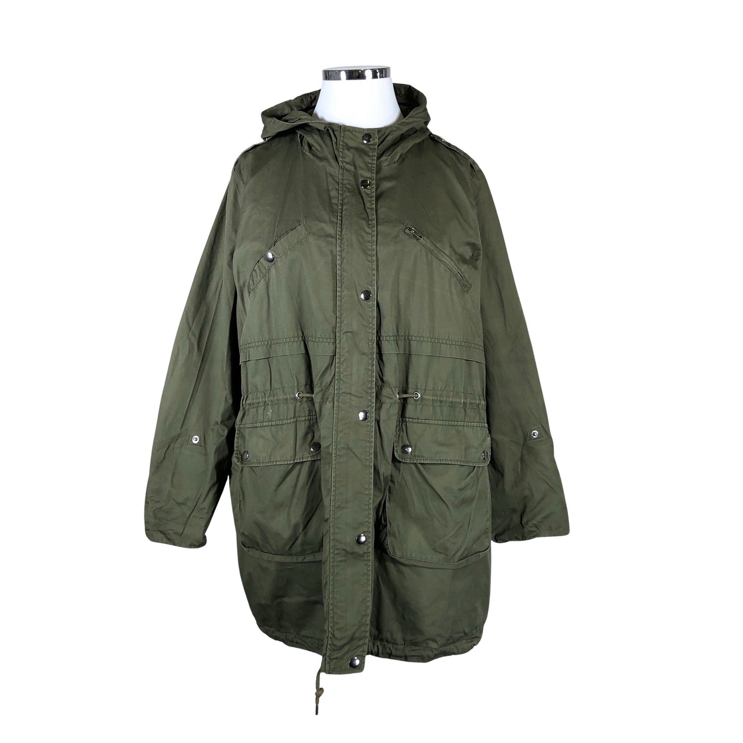 Materiaali ei jousta. Kiristysnauha vyötäröllä. Isot koot-mallistoa. Tuotteen pinnassa on aavistus pesu-/käyttökulumaa. Kauluksen sisäpuolella on aavistus tummentumaa. Tuotteen pinnassa on aavistus käyttölikaa. Tuote vaatii pesun. Yleisilme on siisti.