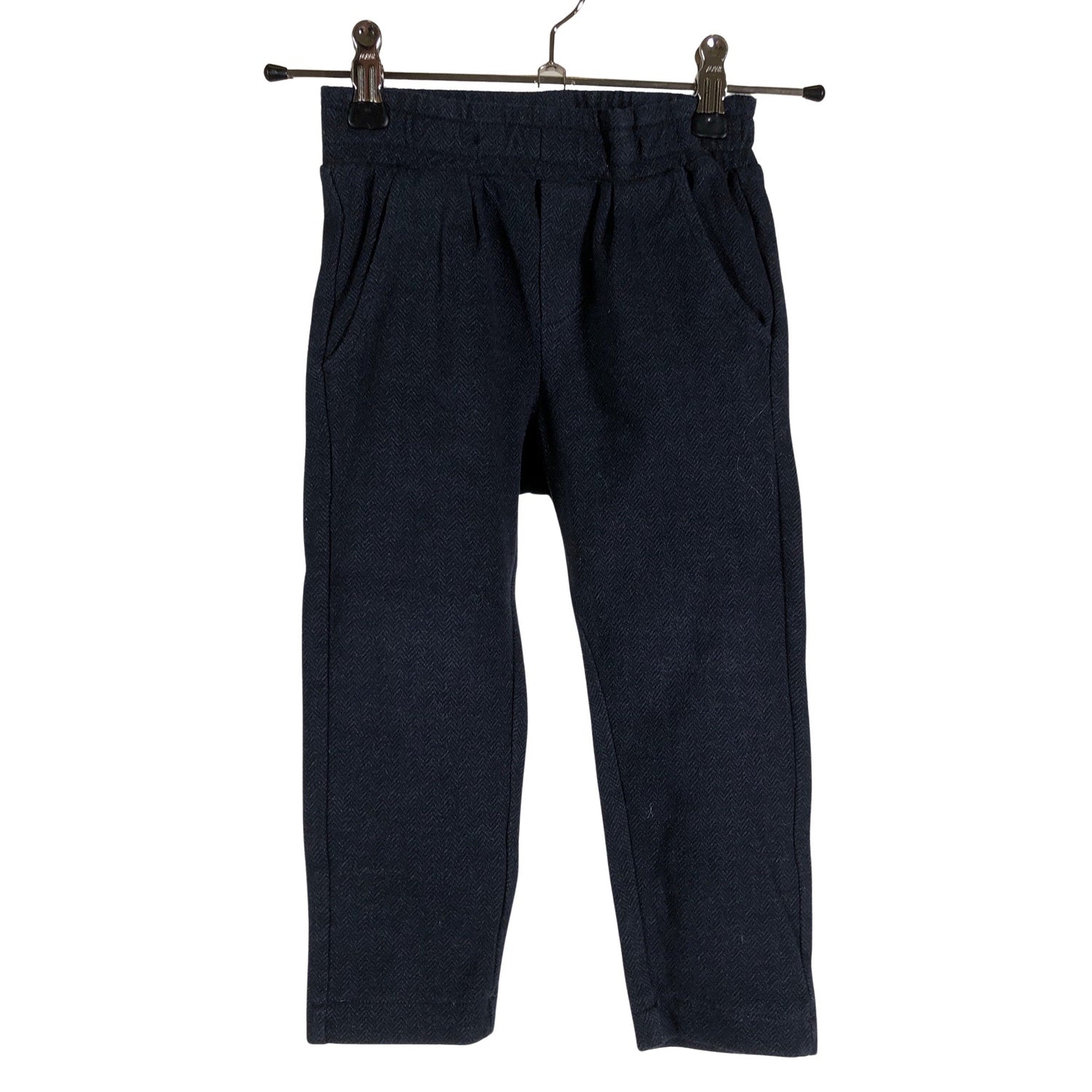 Joustava vyötärö. Puuvillasekoitetta. Tuotteen pinnassa on hieman pesu-/käyttökulumaa. Yleisilme on siisti.