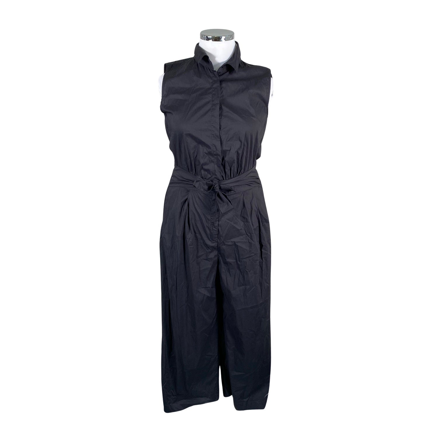 Edessä napit. Vaatteessa on taskut. Materiaali joustaa. Tuotteen pinnassa on aavistus pesu-/käyttökulumaa. Yleisilme on siisti.